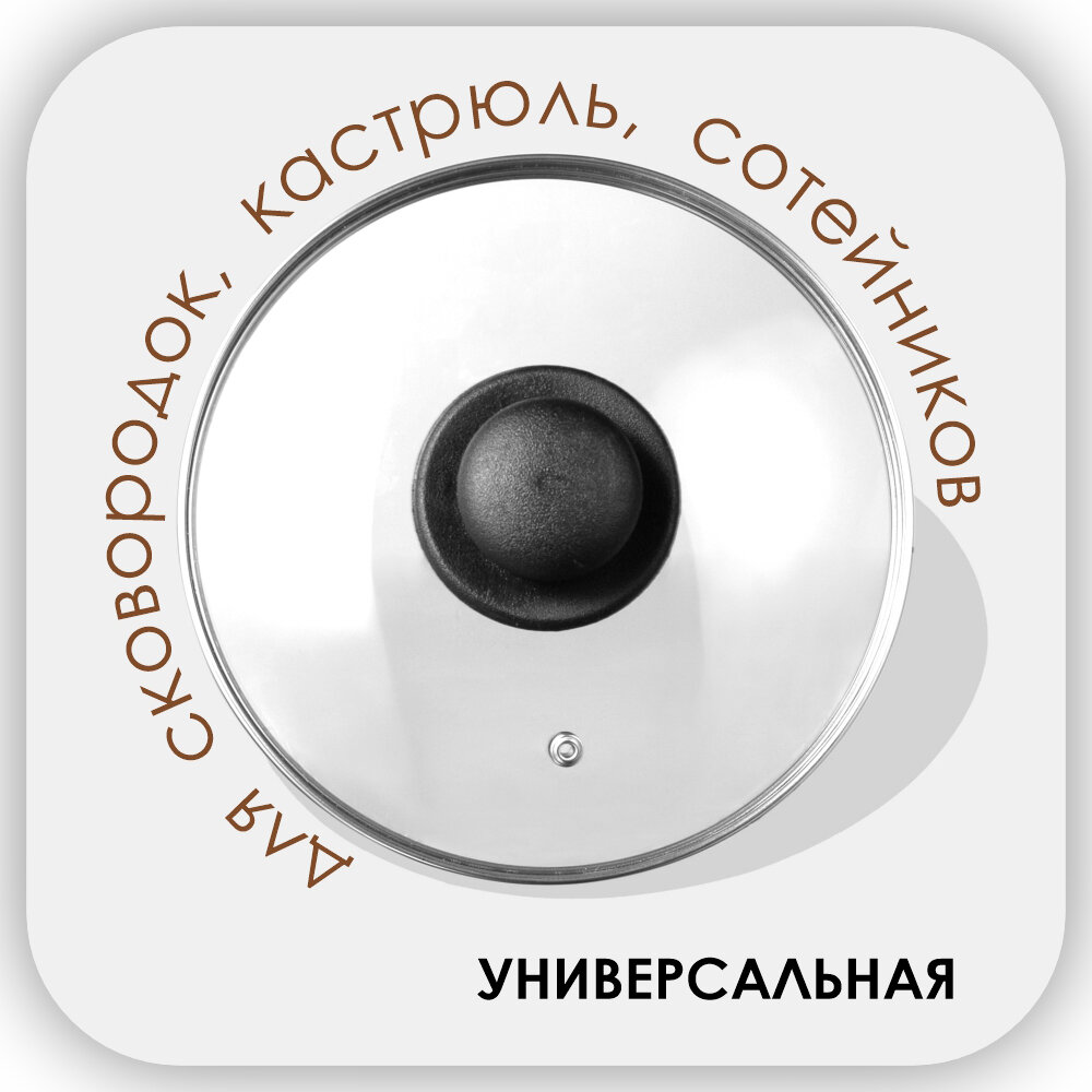 Крышка KONONO универсальная для кастрюль и сковород с пароотводом 26 см информация: