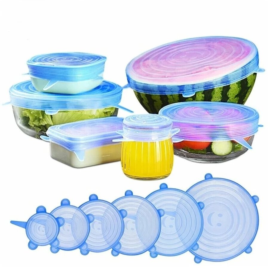 Силиконовые крышки для посуды, растягивающиеся в наборе 4 шт
