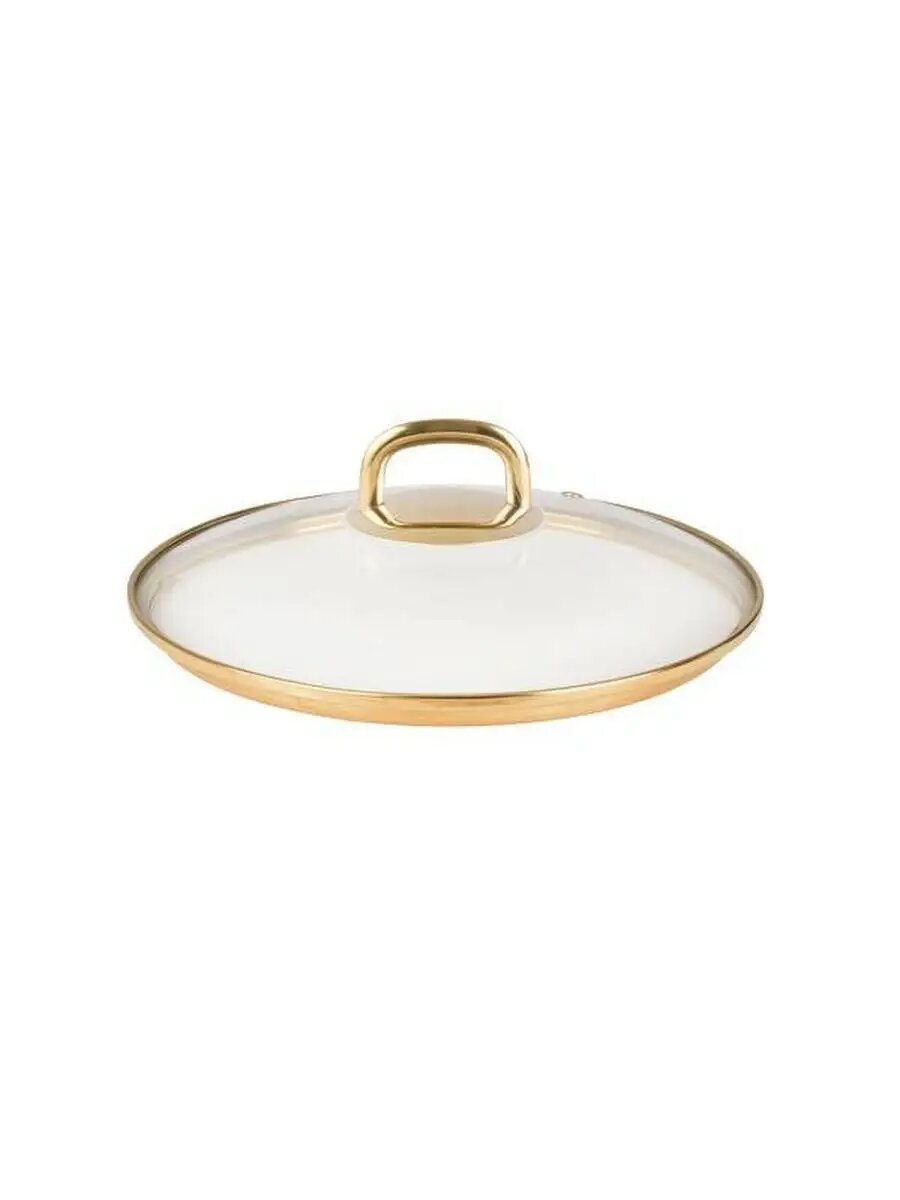 Крышка стеклянная Kukmara 240мм, с ободом и пароотводом из нерж. стали под золото и ручкой-кнопкой