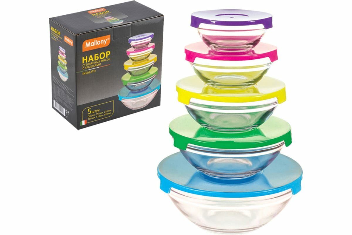 Набор из 5 стеклянных мисок с крышками INSALATO информация:
