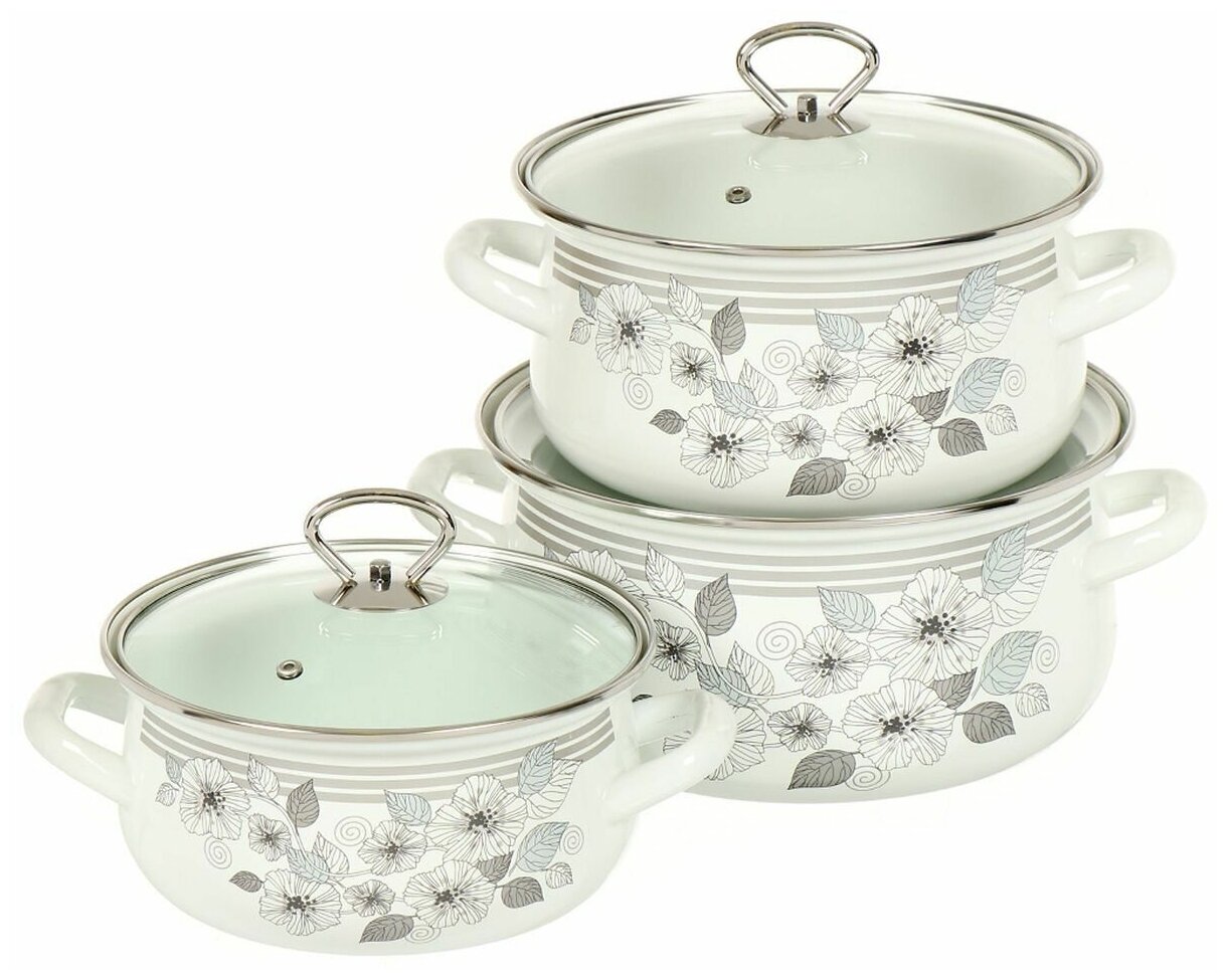 Набор кастрюль Сибирские товары Пионы, эмалированные, 2, 3 и 4 л