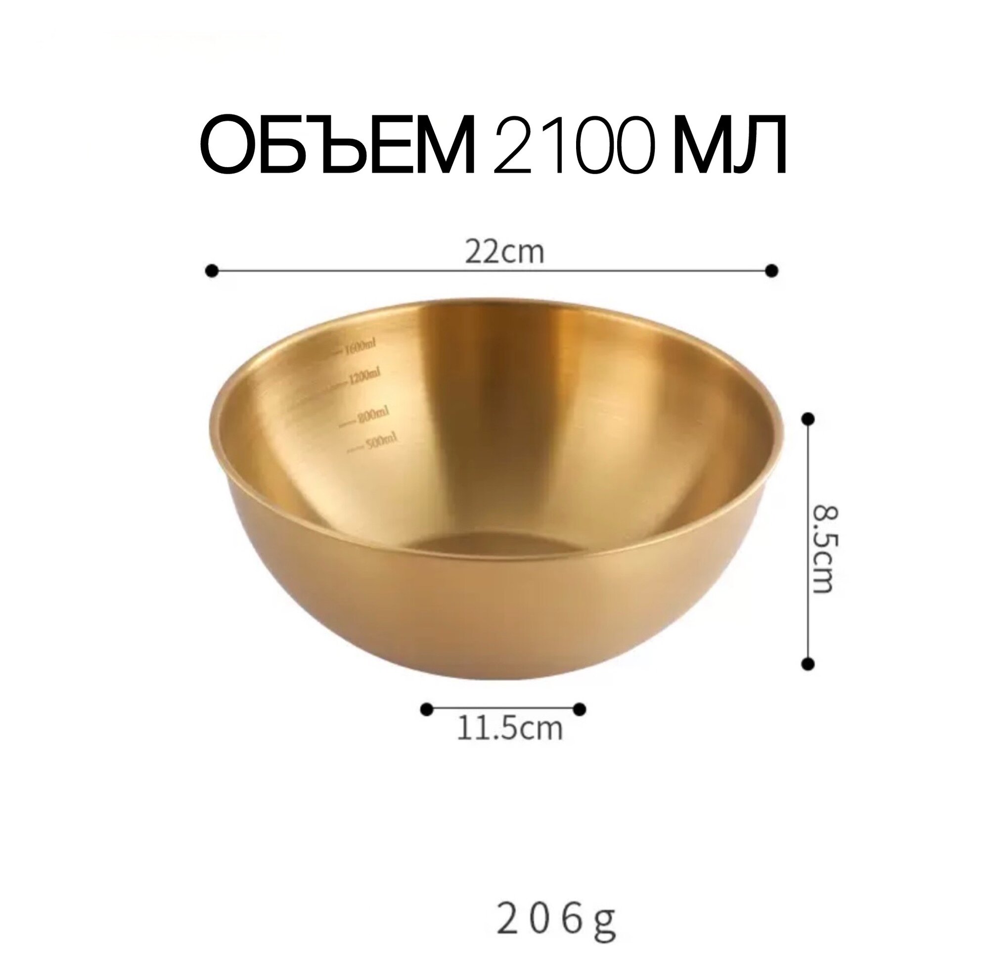 Миска золотая металлическая 2,1л /салатник из нержавеющей стали золотой 2100 мл информация: