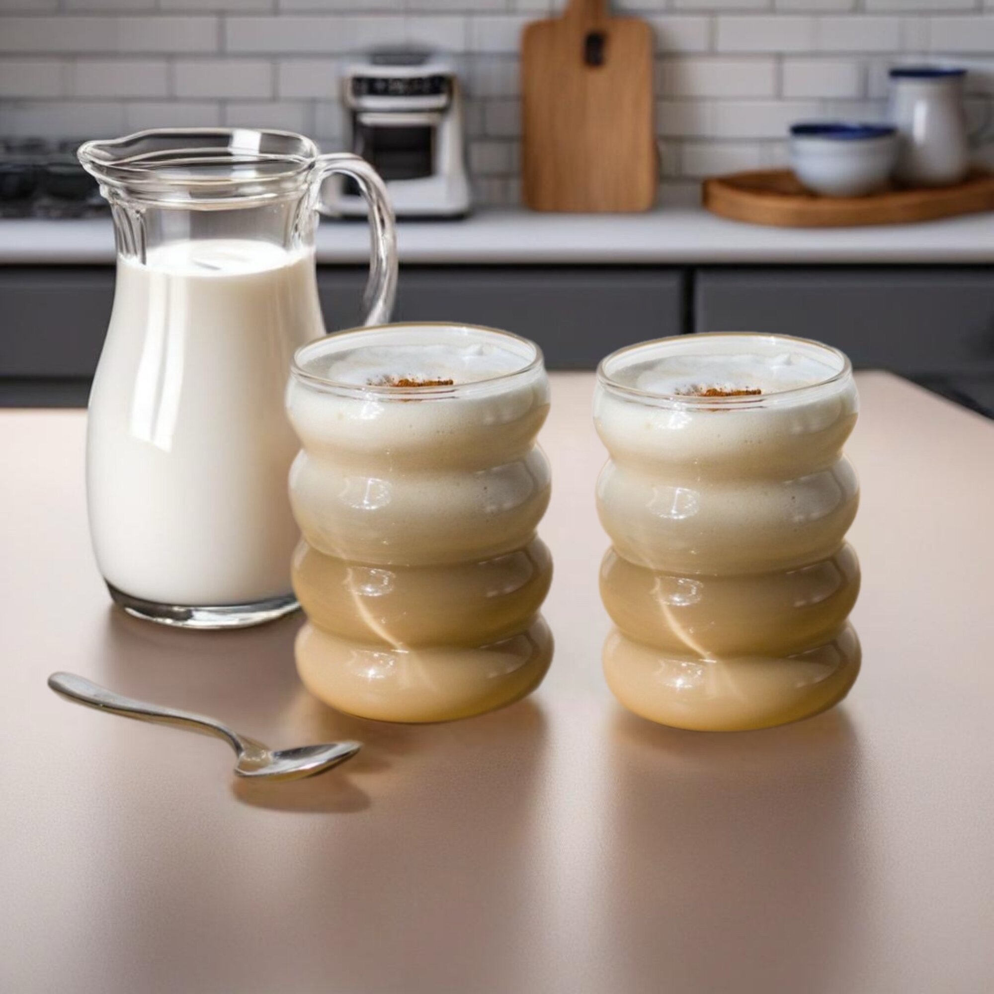 Отзывы на Набор стеклянных волнистых стаканов для кофе, латте, чая, бокал 300 мл 2 шт прозрачный
