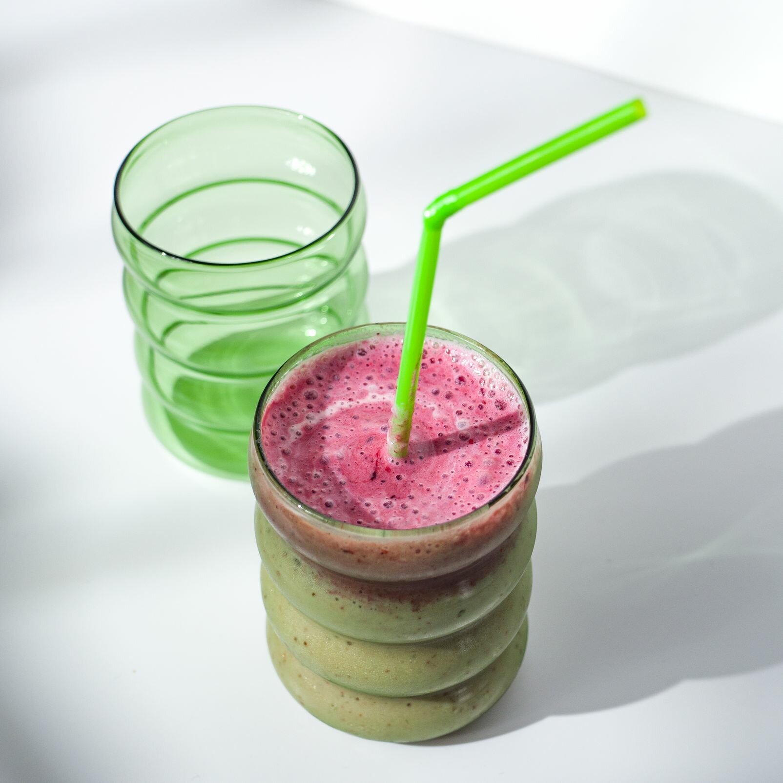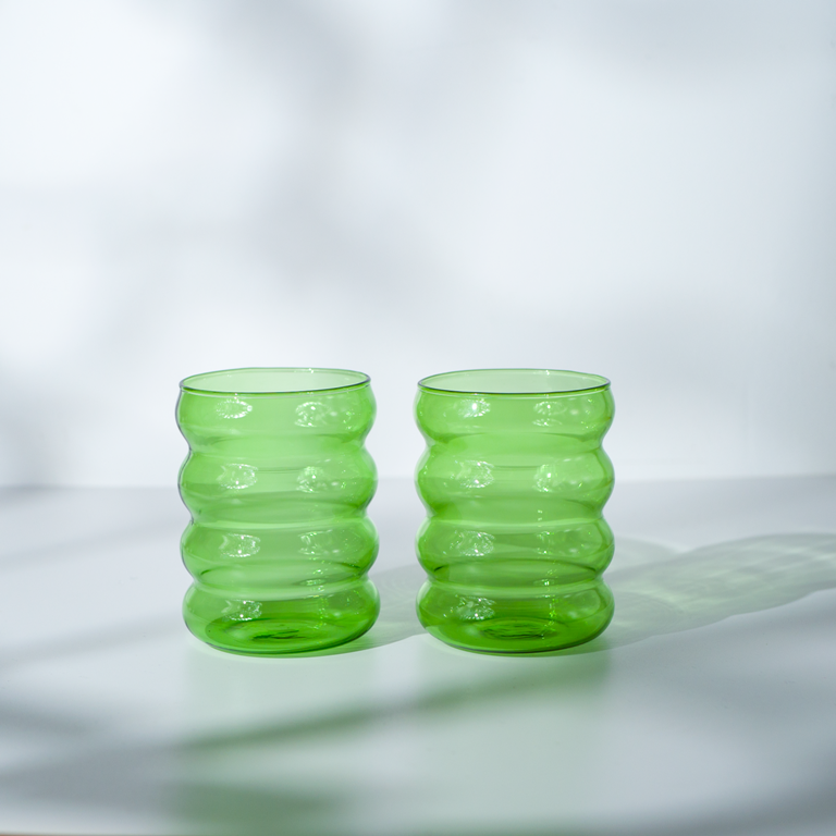 Отзывы на Набор стеклянных волнистых стаканов для кофе, латте, чая, бокал 300 мл 2 шт зеленый