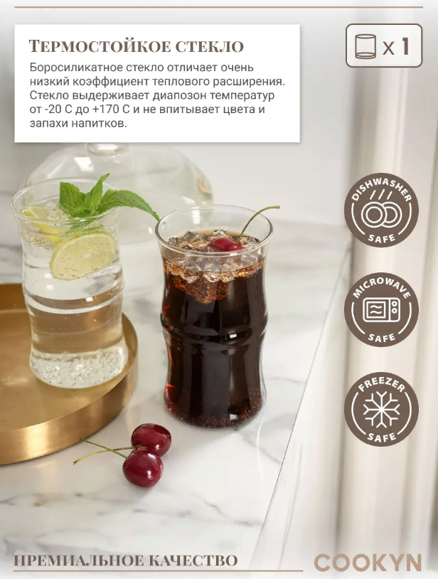 10 цен на Стакан COOKYN BG3-400-CL, боросиликатно стекло, прозрачный, 400 мл