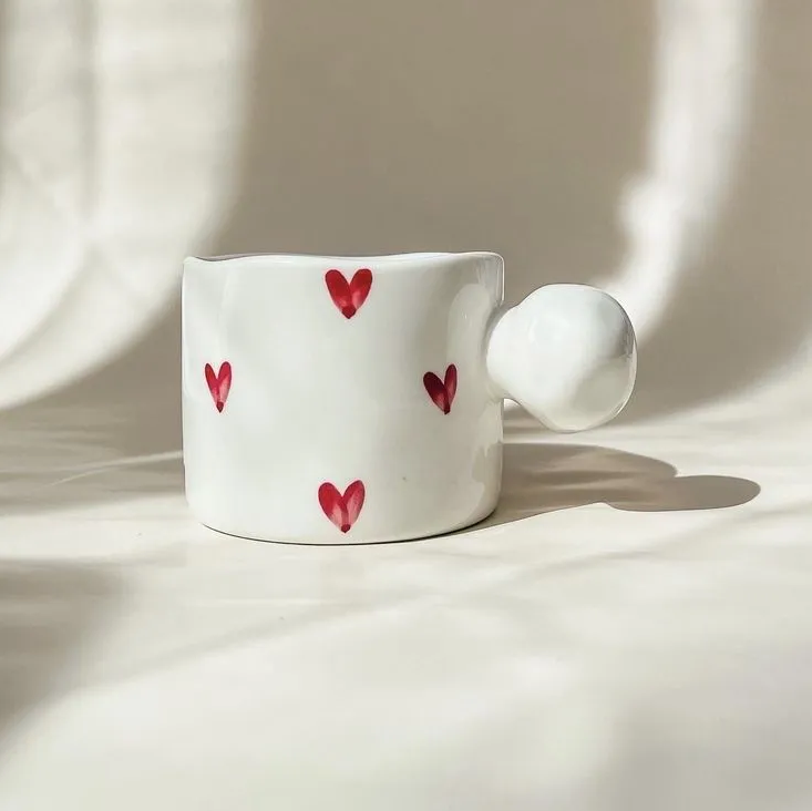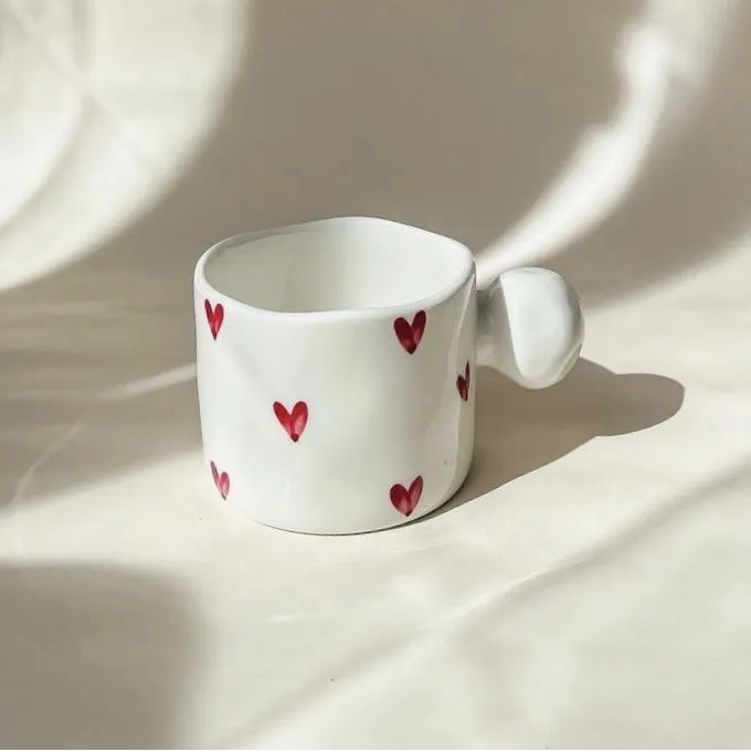 10 цен на Кружка с сердечками, кружка для чая и кофе, чашка белая с сердечками, 250 мл