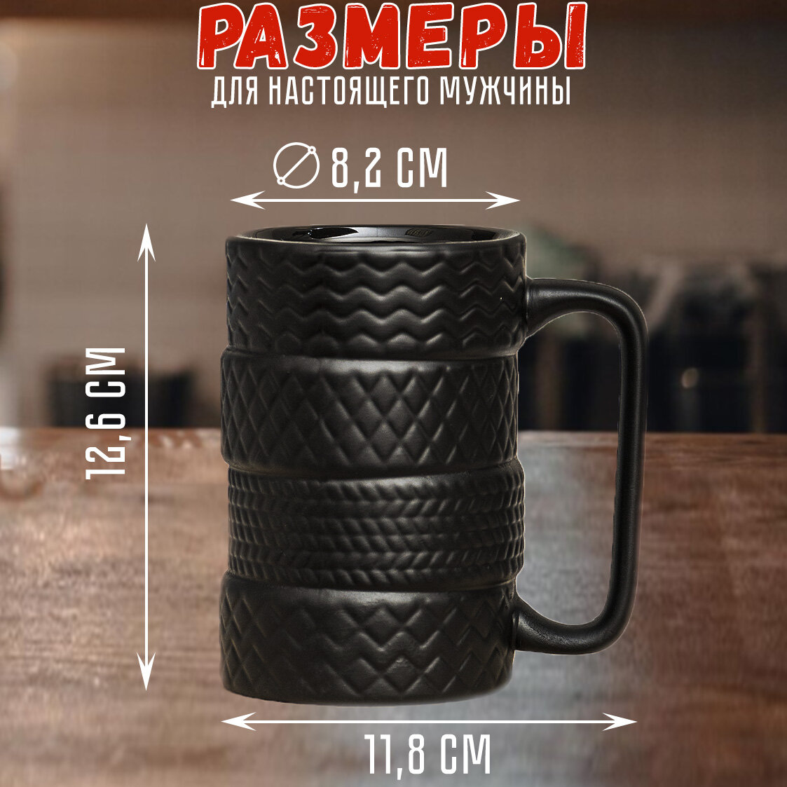 10 цен на Кружка Автолюбителя керамическая 450 мл, четыре Шины, чашка мужская Колеса подарок мужчине, парню, сыну, мальчику, коллеге на 23 февраля