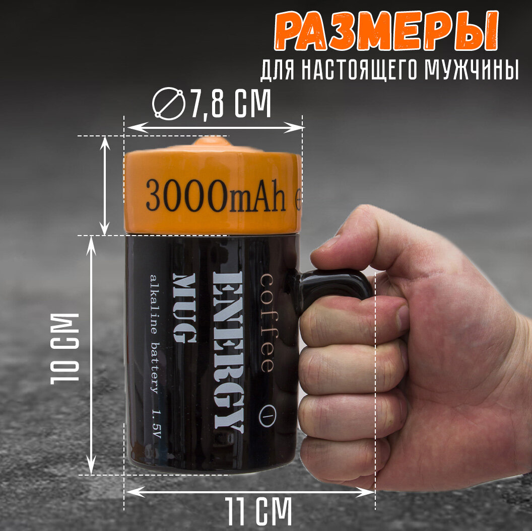 10 цен на Кружка Батарейка Зарядись Энергией 330 мл Эврика, большая чашка с крышкой, мужская, подарочная на 23 февраля