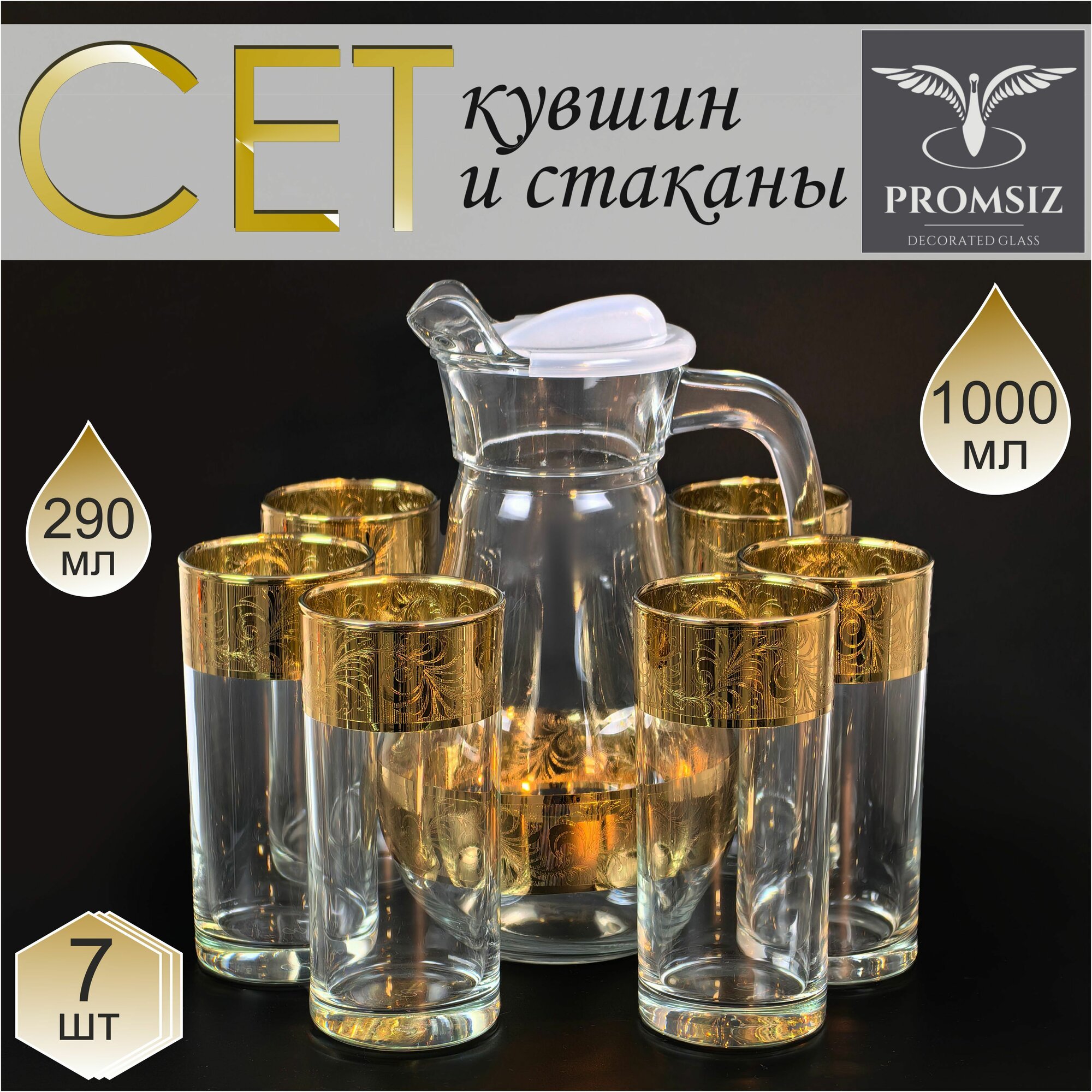 10 цен на Подарочный набор с алмазной гравировкой PROMSIZ перфетто Кувшин с крышкой для напитков 1000 мл, Стаканы для напитков 290 мл 6 шт.