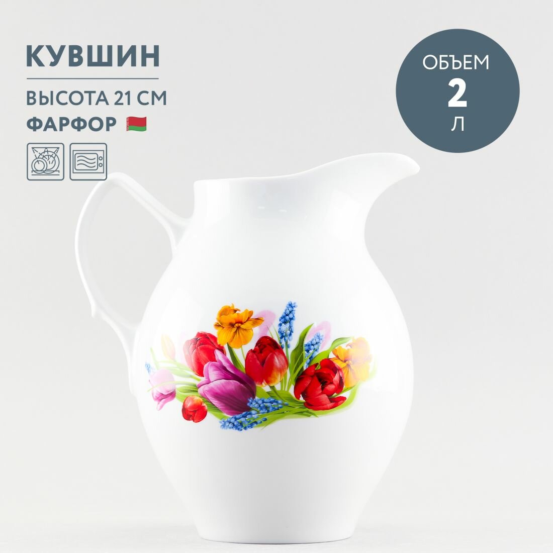 10 цен на Кувшин фарфоровый без крышки 2 л Добрушский фарфор Майский букет