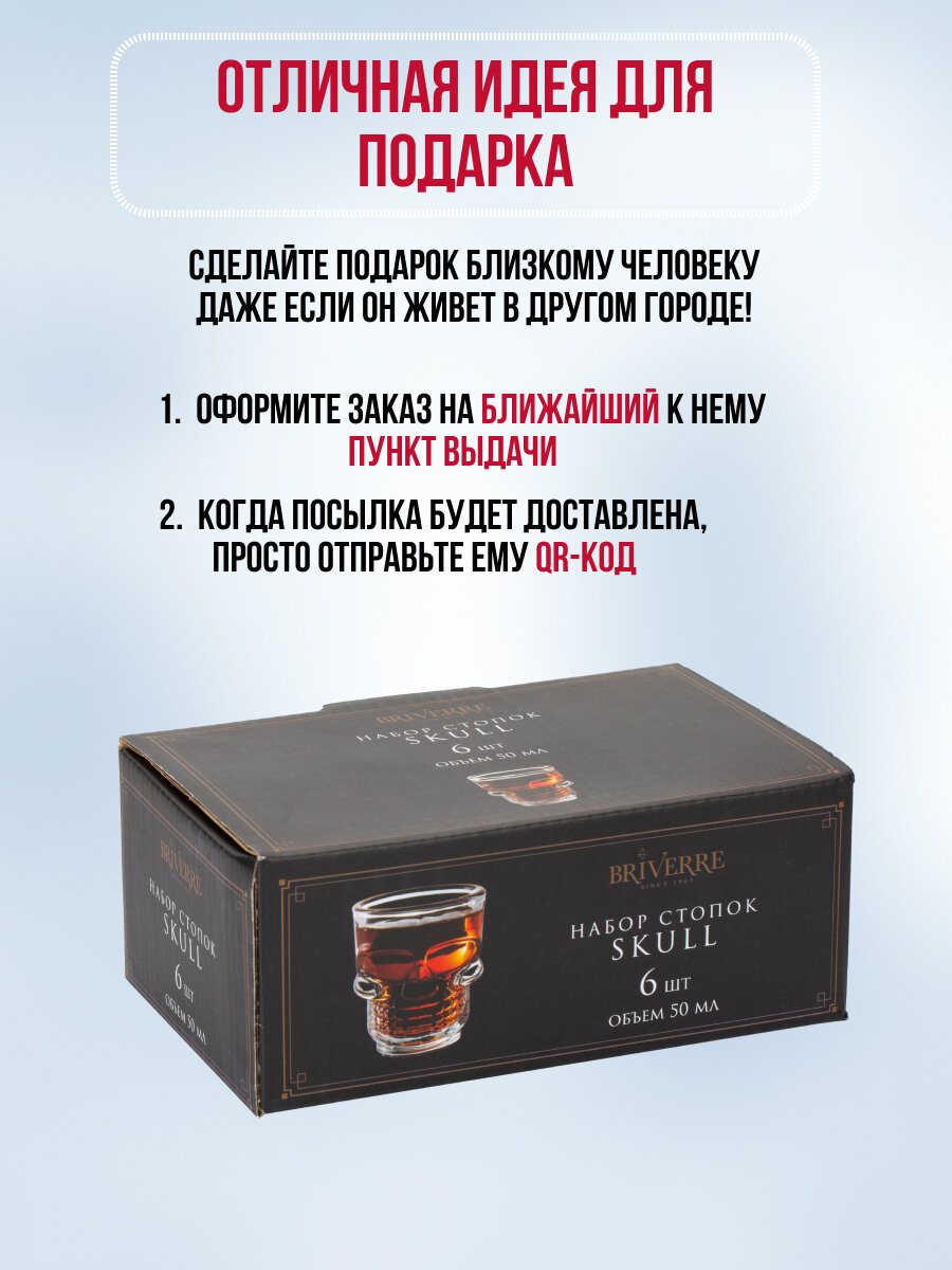 | Дополнительная информация | Набор стопок BRIVERRE Череп 6шт. 50мл стекло |