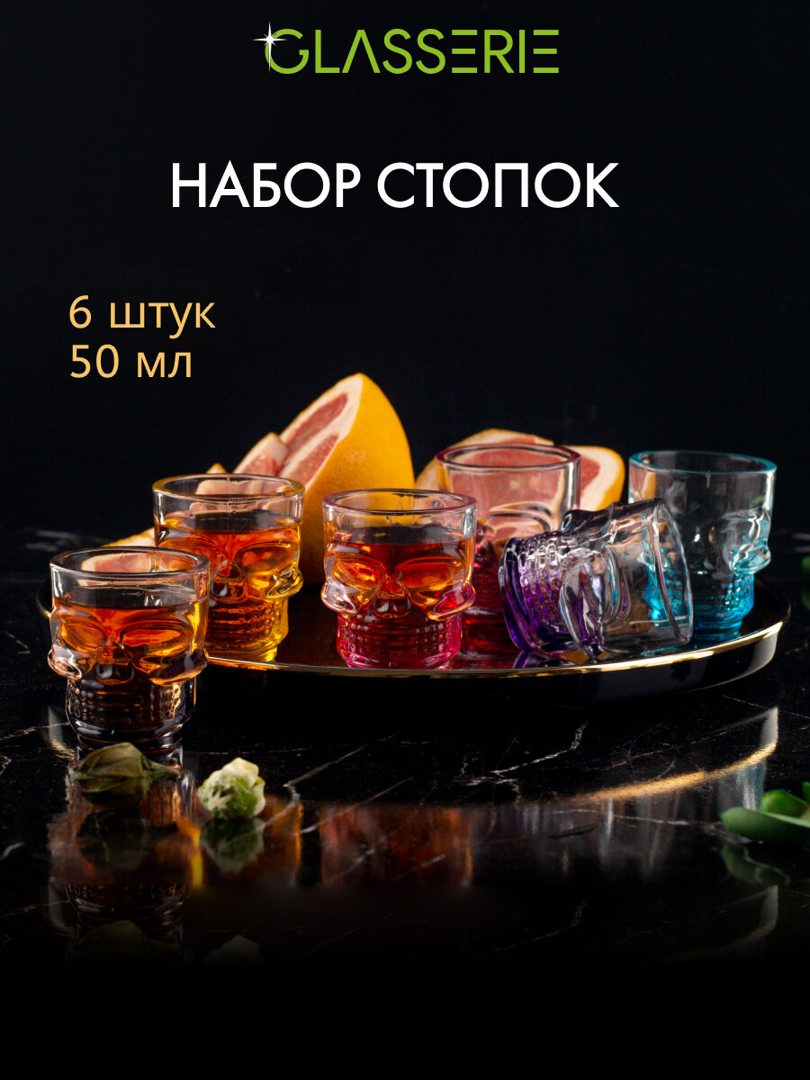 10 цен на Набор стопок Glasserie SKULL COLORS 6шт 50мл