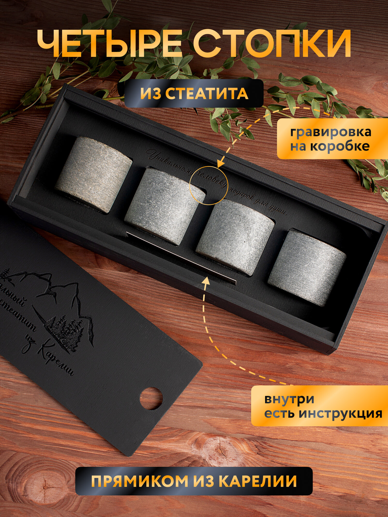 Набор стопок из натурального стеатита с подарочной коробке информация: