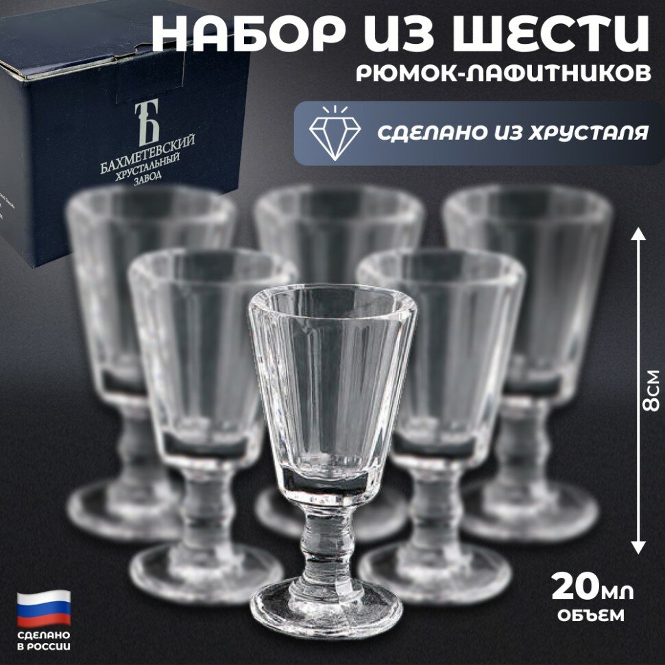 Бахметьевский завод Набор из шести хрустальных рюмок-лафитников (20 мл, Бахметьевский завод) информация: