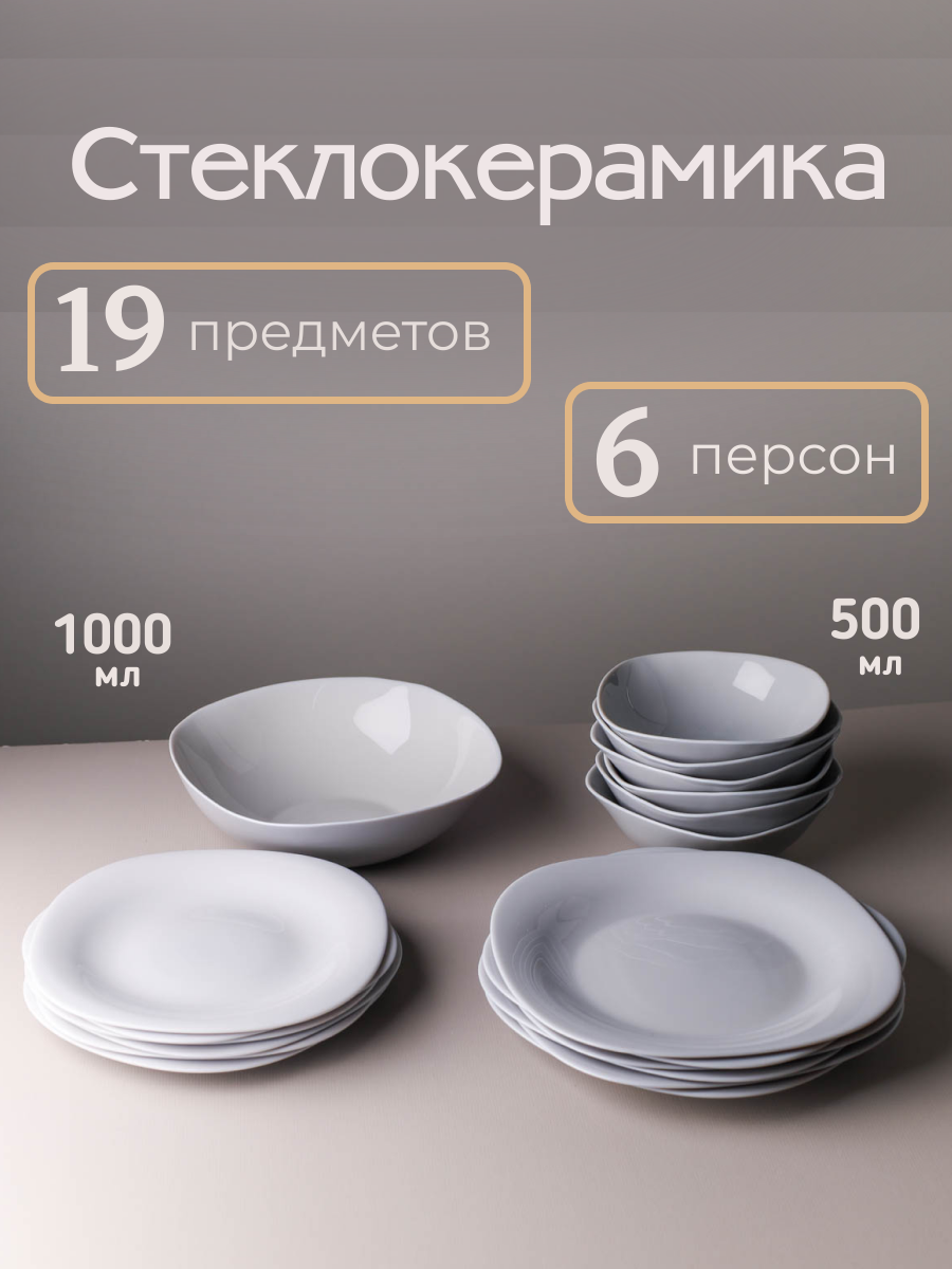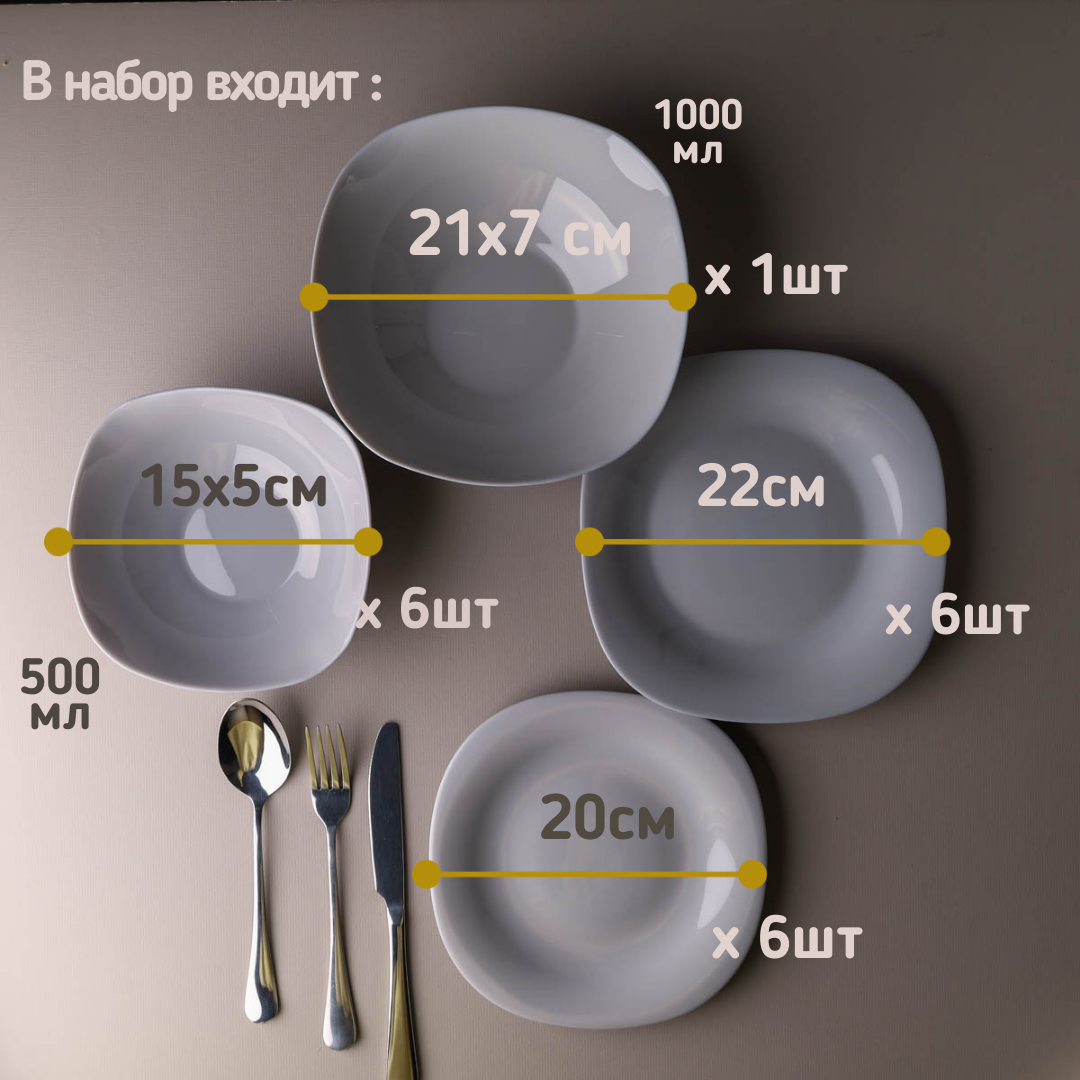 10 цен на Столовый набор 19 предметов квадратный Серый цвет сервиз 6 персон обеденный