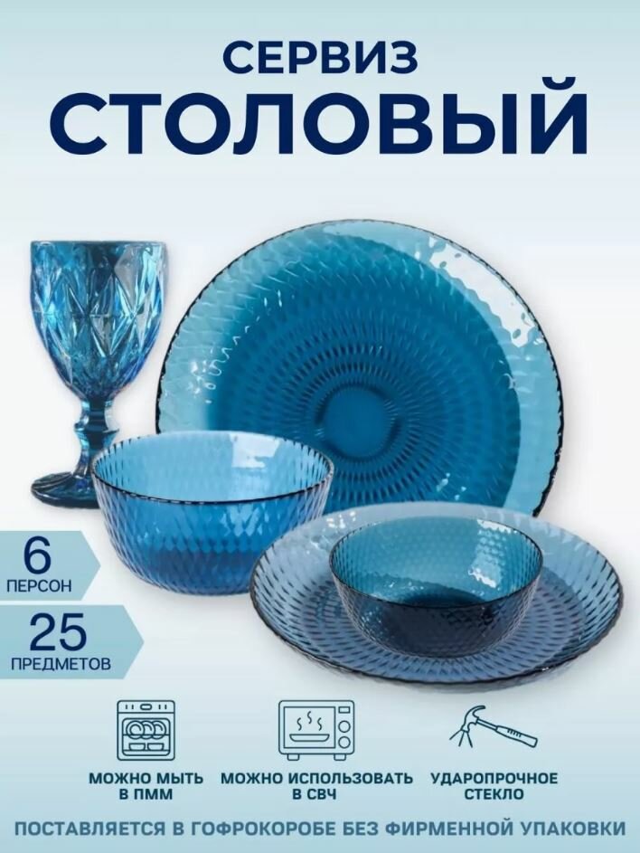 Сервиз столовый/набор посуды Luminarc "Лондон топаз" 25 предметов с бокалами информация: