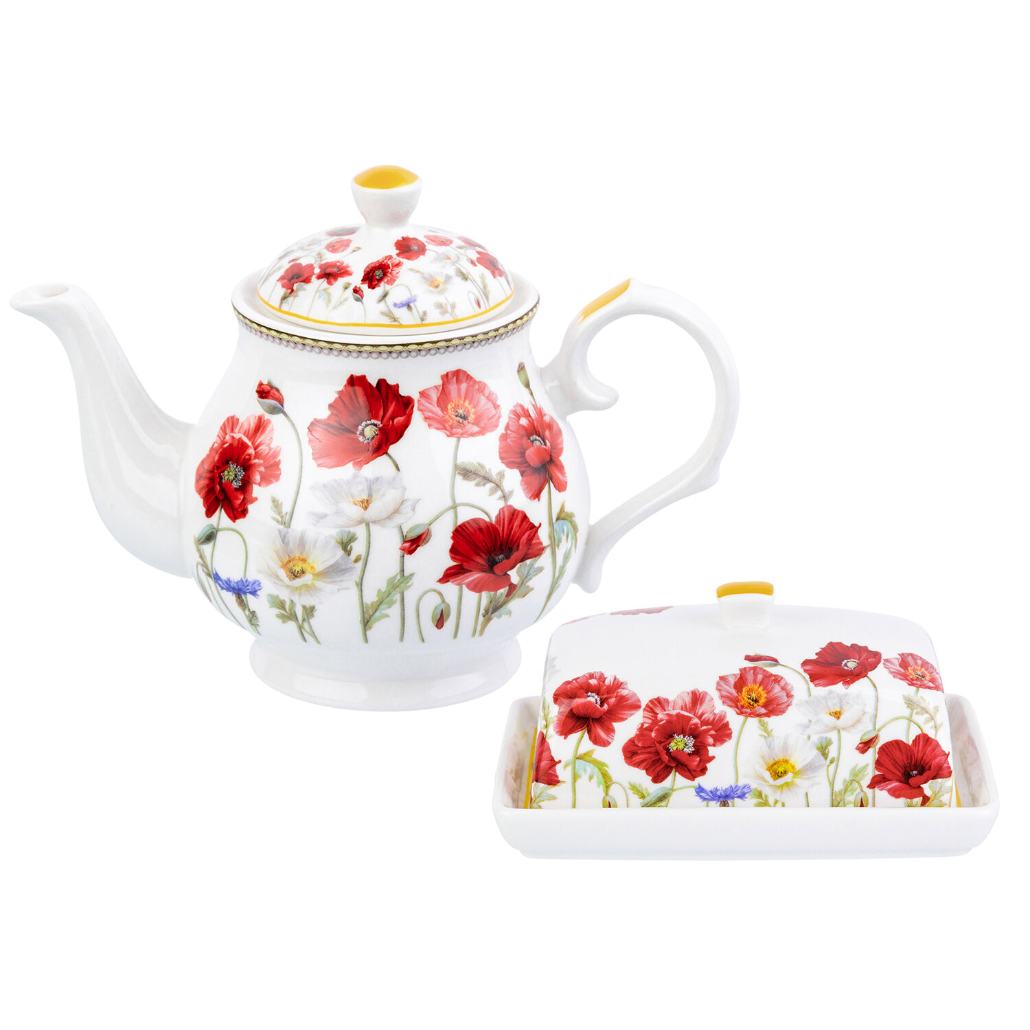 Набор 2 предмета Elan Gallery "Маки" масленка 13,5*9*6,5 см + чайник 430 мл