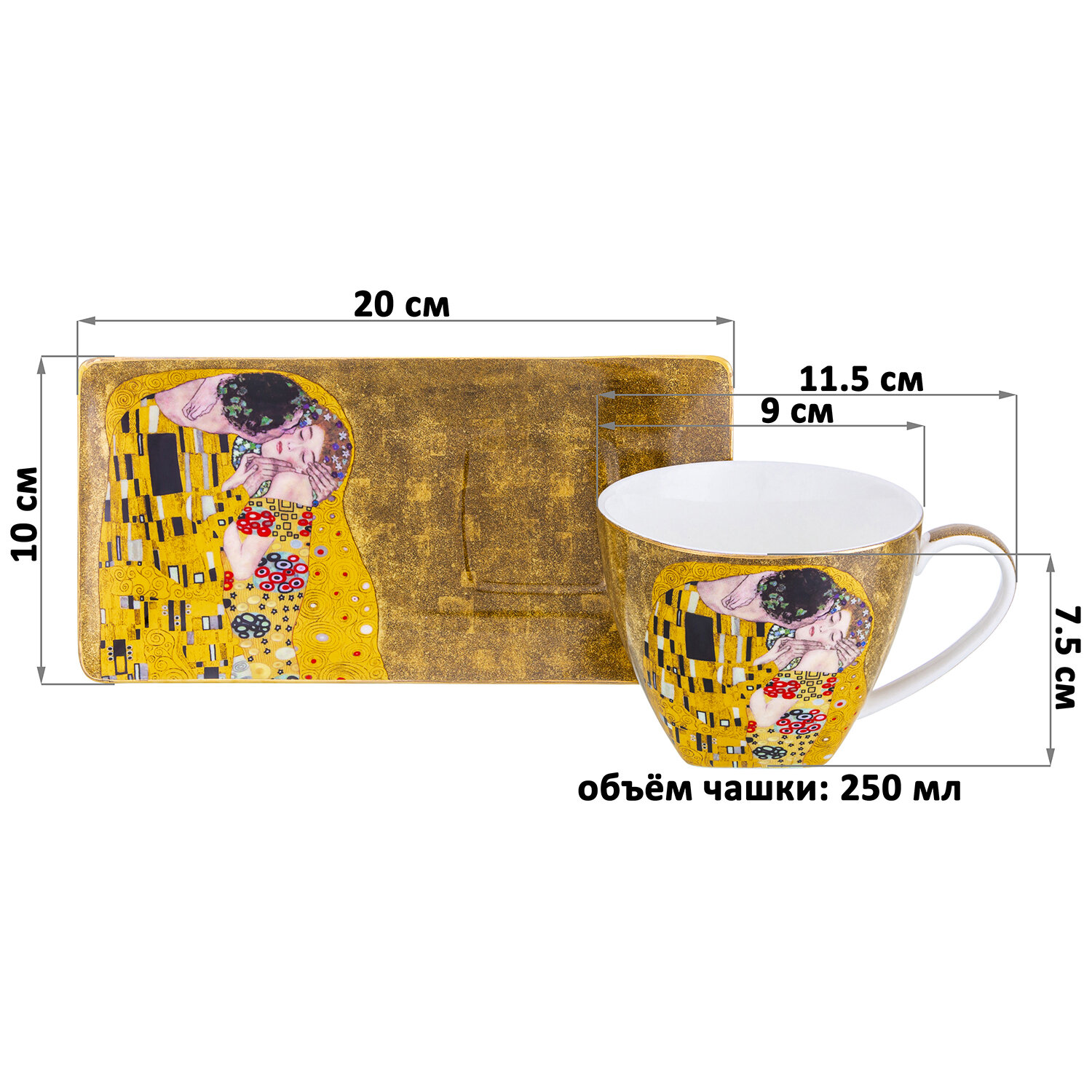 Чашка / кружка 250 мл с блюдцем для десерта 20х10х2 см Elan Gallery Поцелуй информация: