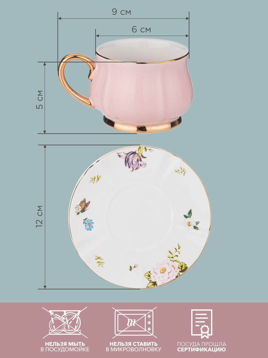 Кофейный набор Lefard "Пинк" на 6 персон 12 предметов: чашка кофейная из фарфора 100 мл с блюдцем 6 шт информация: