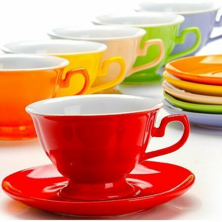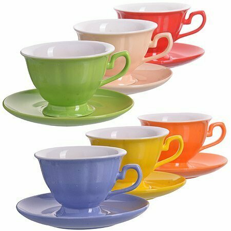 | Дополнительная информация | Материал: керамика. Подставка: металл. Цвет: разноцветный (зелный, малиновый, желтый, красный, голубой, оранжевый. Набор 13 предметов: чашки - 6 шт, блюдцы - 6 шт, подставка - 1 шт. Чашка: объем 220 мл, диаметр (по внутреннему краю) 8 см, диаметр дна 4 см, высота 7 см, длина с учетом ручки 10 см, вес 155 г. Блюдце: диаметр 14 см, диаметр дна 9 см, высота 2 см, вес 191 г. Подставка: диаметр 19 см, высота 20,5 см, вес 160 г. |