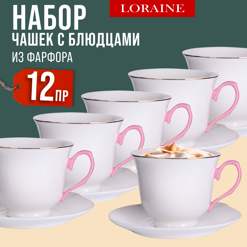 Чайный сервиз на 6 персон фарфор 12 предметов 200 мл LORAINE 30531 3 635 ₽