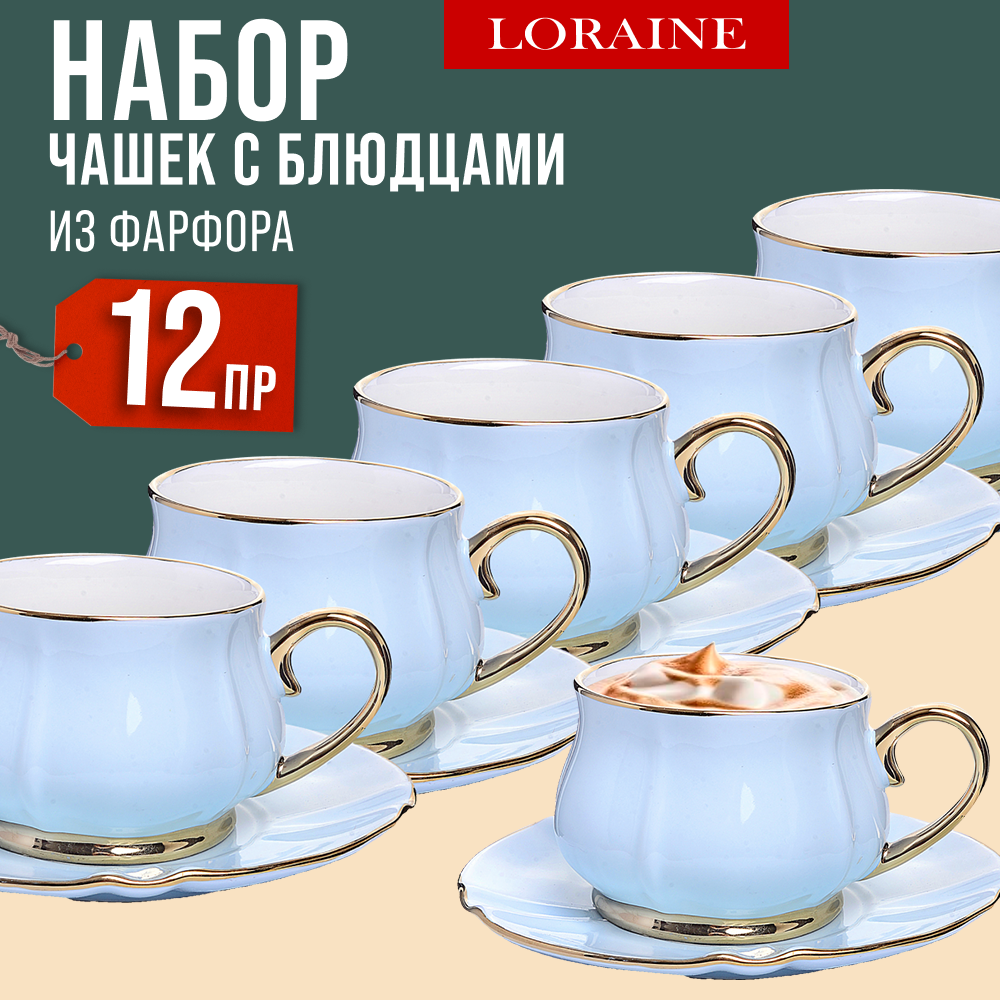 Чайный сервиз на 6 персон фарфор 12 предметов 200 мл LORAINE 30532 3 240 ₽