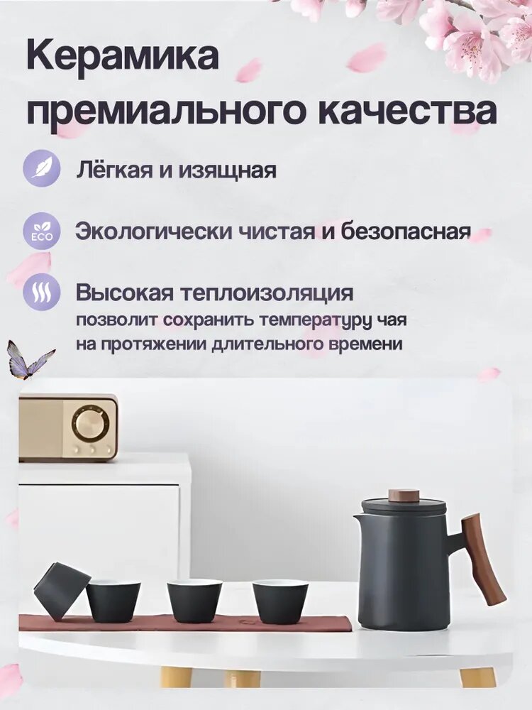 Отзывы на Набор для чайной церемонии, Сервиз с чайником, посуда для чая, фарфоровый, на 4 персоны черный
