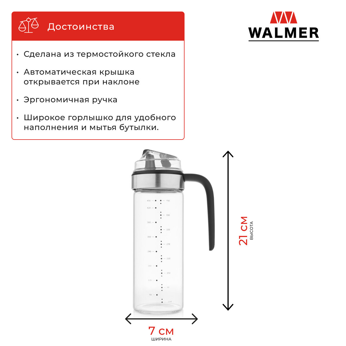Отзывы на Бутылка для масла с автоматической крышкой Walmer Home Chef, 500 мл, цвет прозрачный