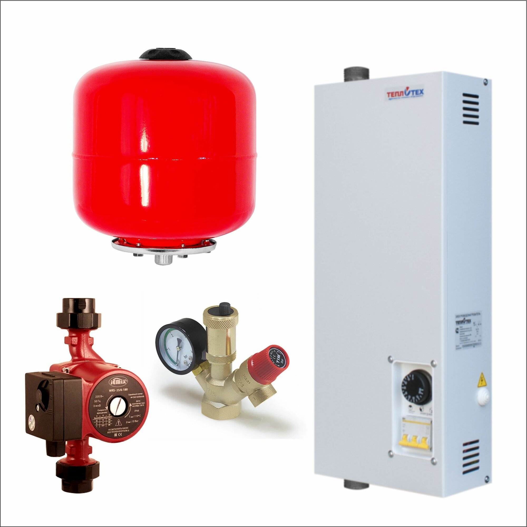 Комплект отопления с электрическим котлом ЭВП-12 (ЭВП-12/ Расширит бак 12 л/Группа безопасности TIM 1,5 / Циркуляционный насос 25/6-180)