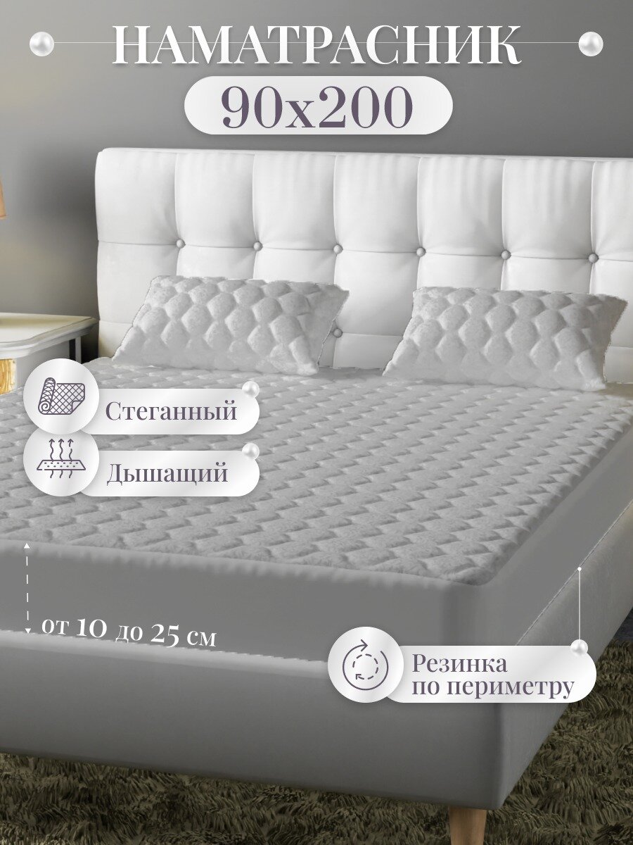 10 цен на Наматрасник 90х200, Серый, Защитный чехол, Борт 20, Топпер на матрас