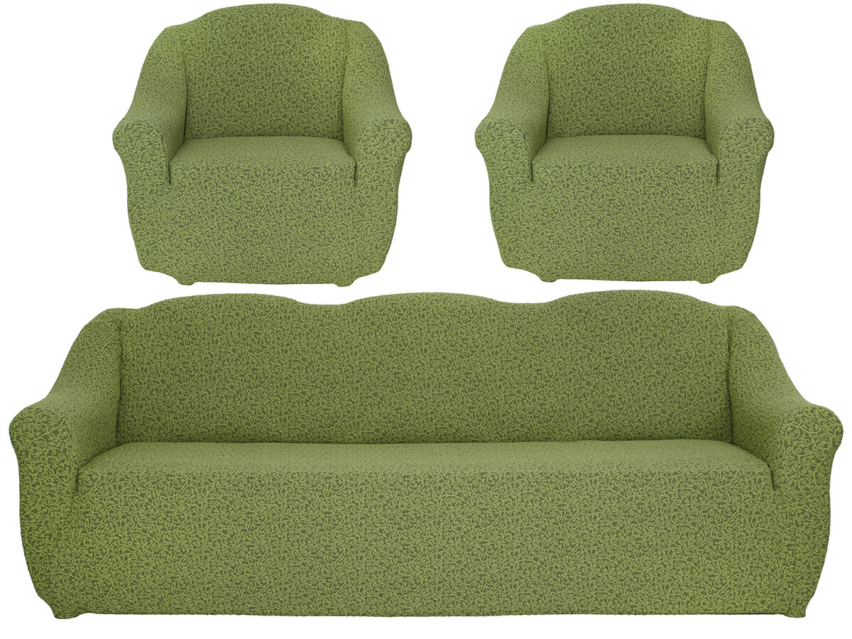 Чехлы на диван трехместный и кресла без оборки Жаккардовая ткань, цвет Зеленый 6 660 ₽