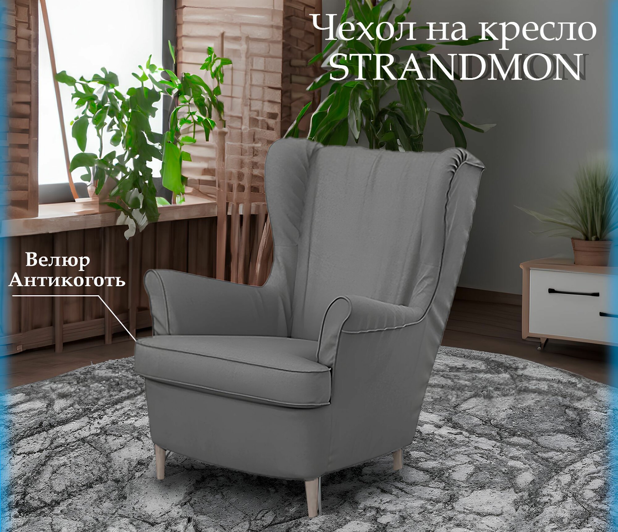 Чехол на кресло Страндмон STRANDMON , Цвет темно - серый "Велюр Антикоготь". информация: