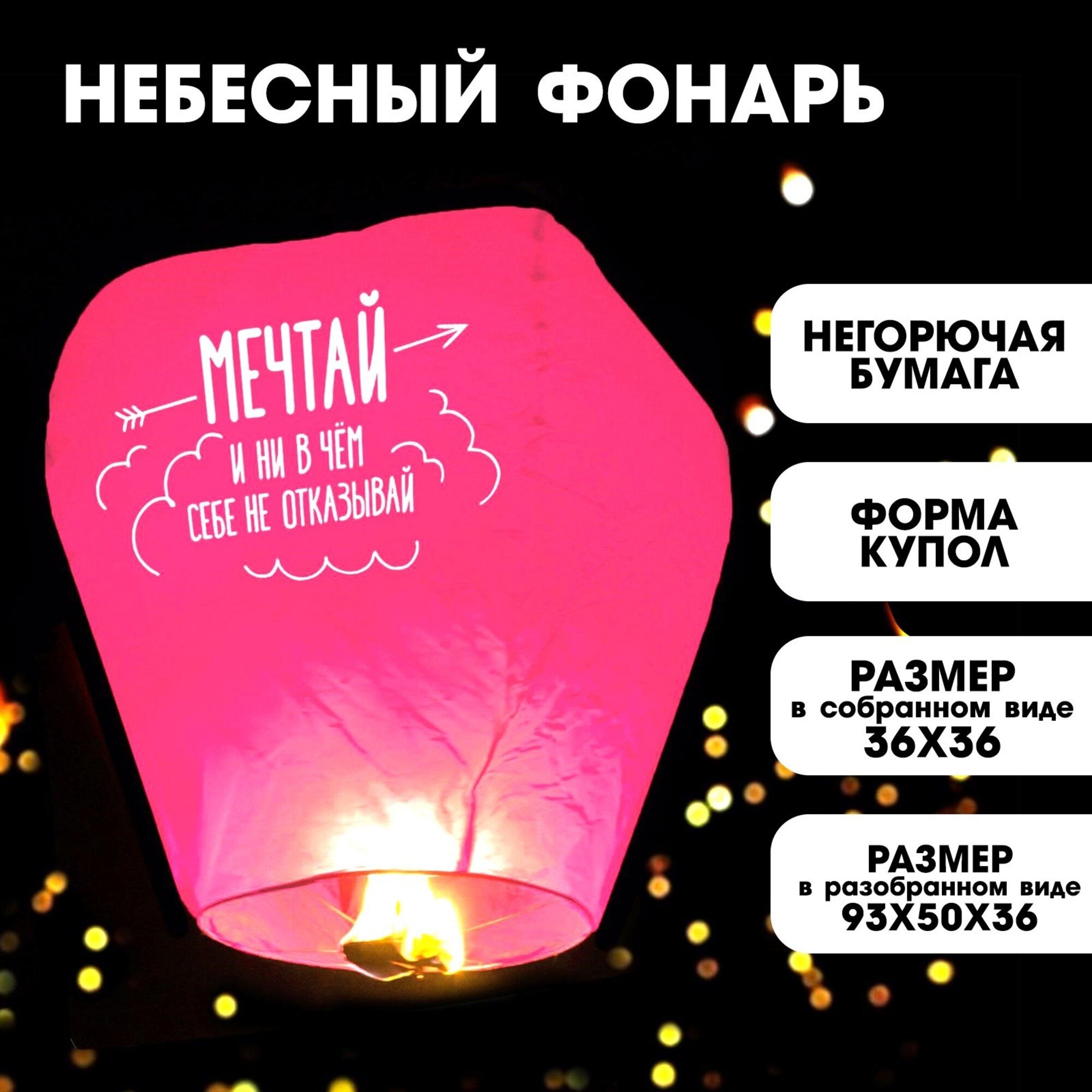 Фонарик желаний "Мечтай" купол, негорючая бумага, китайский фонарь, для детей и малышей, цвет розовый информация: