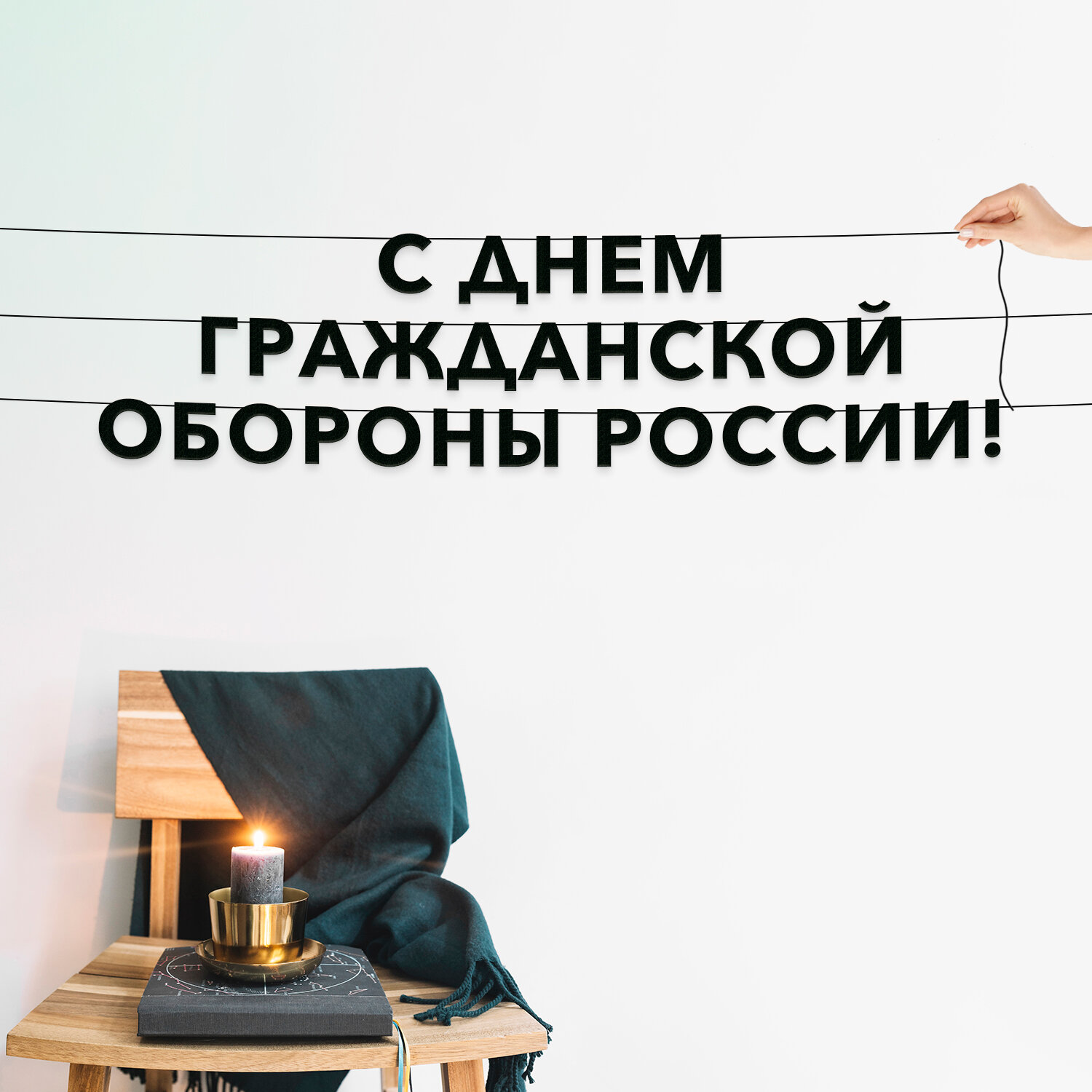 Гирлянда растяжка, праздничная - “С днем гражданской обороны Росссии“, черная текстовая растяжка. информация:
