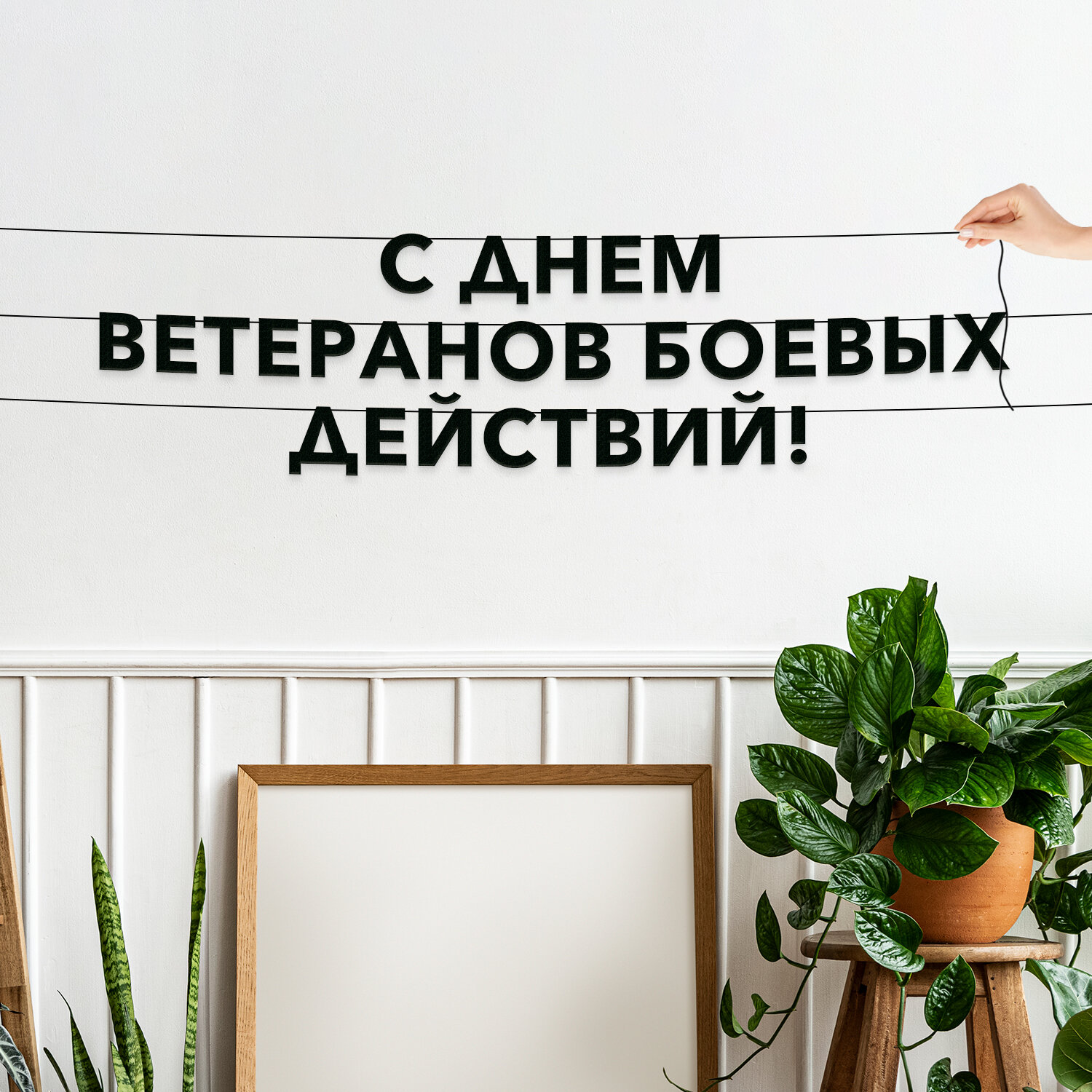 Отзывы на Гирлянда бумажная растяжка, праздничная - “С днем ветеранов боевых действий“, черная текстовая растяжка.