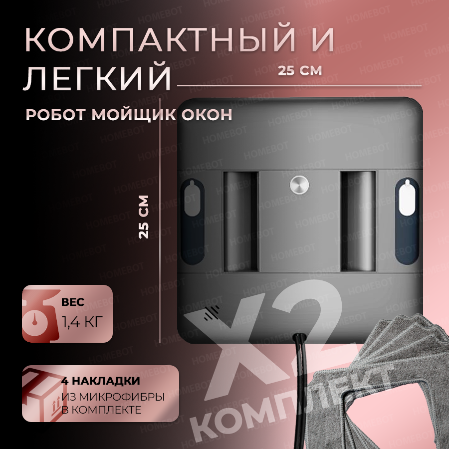 10 цен на Робот мойщик окон W45D Homebot с функцией автораспыления, пульт д/у, 5 салфеток в комплекте, серый, ультратонкий 5,5см