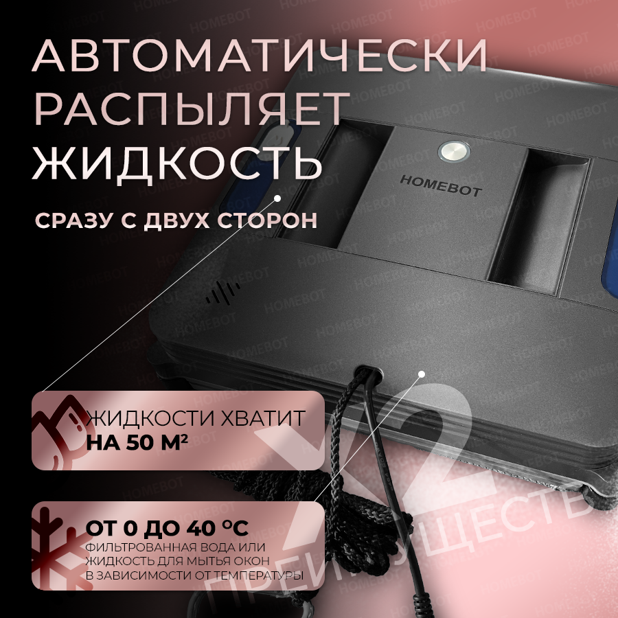 Робот мойщик окон W45D Homebot с функцией автораспыления, пульт д/у, 5 салфеток в комплекте, серый, ультратонкий 5,5см информация:
