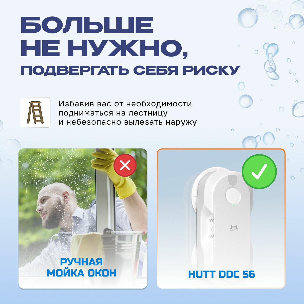 Отзывы на Робот для мойки окон, умный помощник HUTT DDC56, (DDC56) белый
