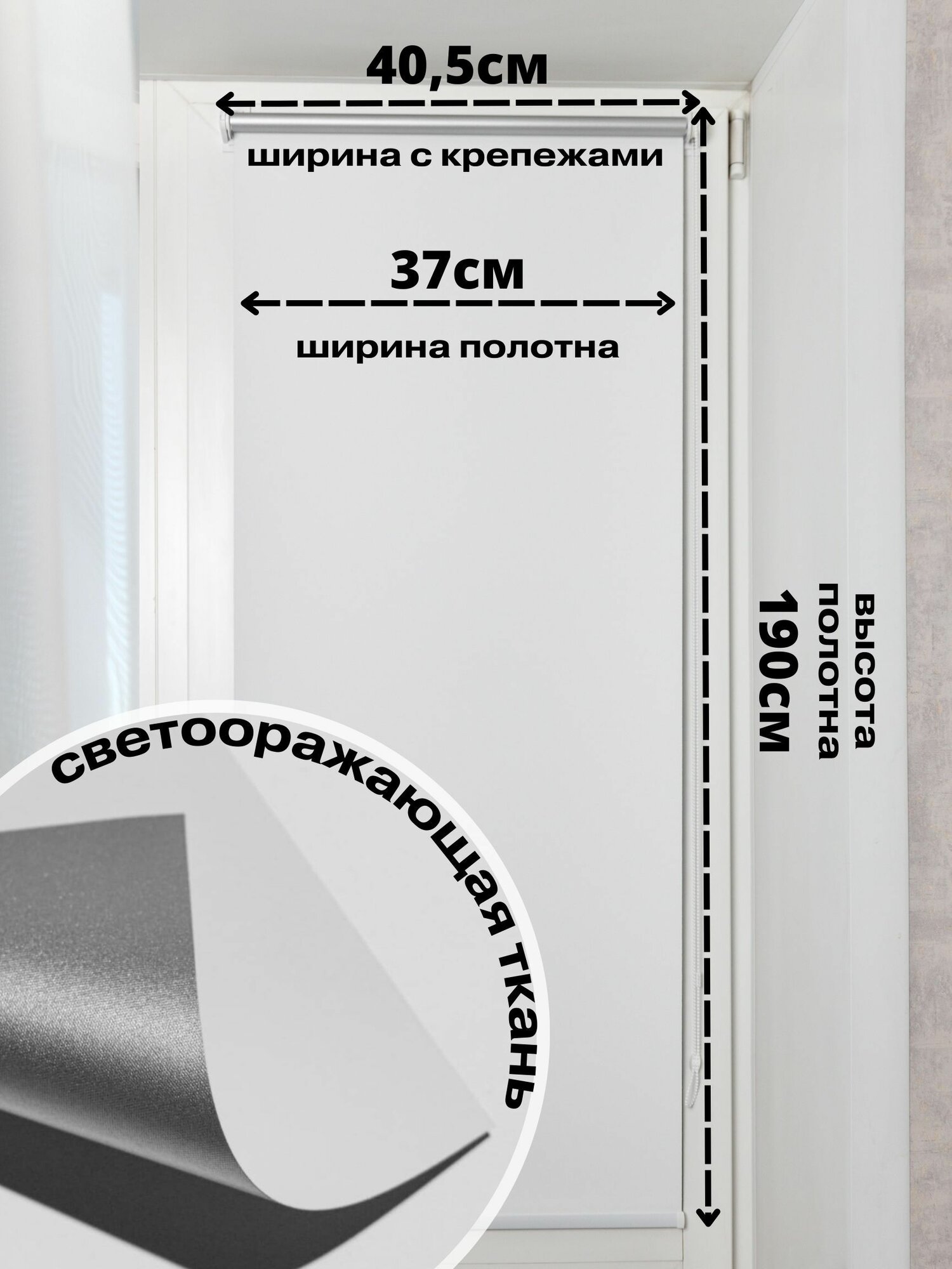 Рулонные шторы блэкаут 37х190 см белые на окна жалюзи день ночь информация: