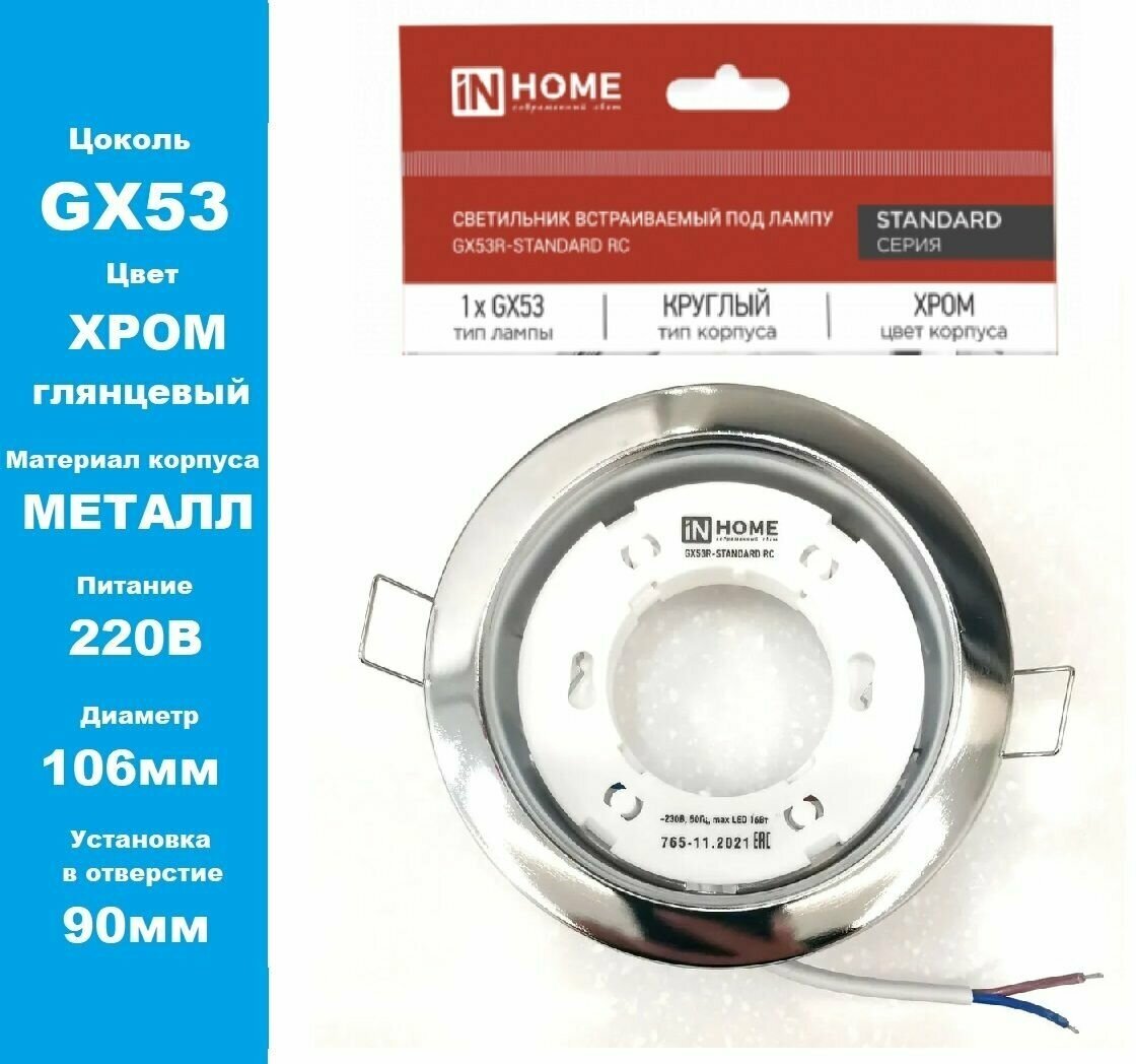 10 цен на Встраиваемый светильник IN HOME gx53r-rc-standard 4690612008424