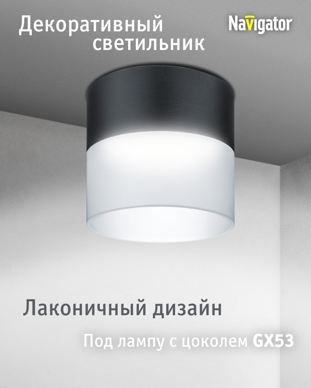 Светильник накладной Navigator 93 306 для ламп с цоколем GX53, черный информация:
