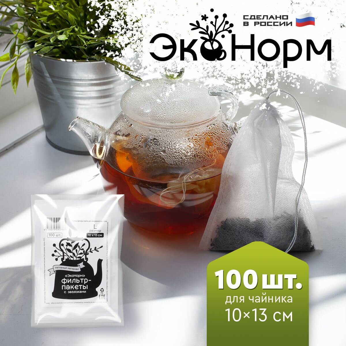 10 цен на Фильтры для заваривания чая и трав "ЭкоНорм" 100 штук с завязками, размер "L" ( 10 х 13 см)