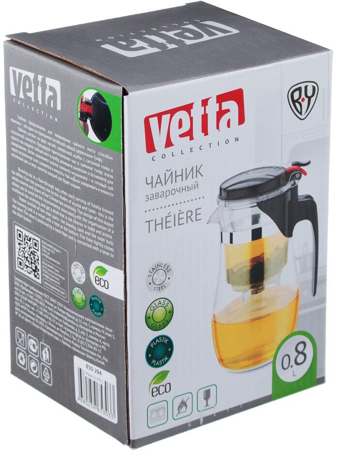 VETTA Микке Чайник заварочный с кнопкой "Гунфу" 800мл, пластик, нерж. сталь информация: