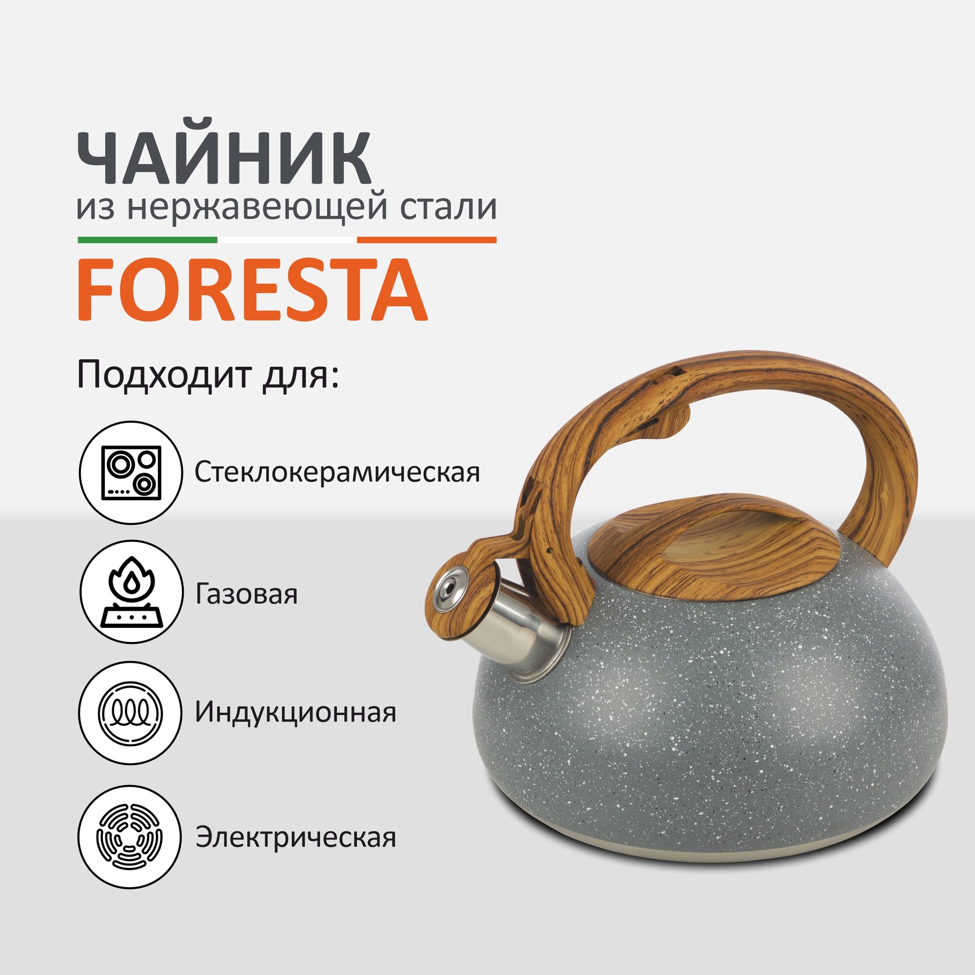 10 цен на Чайник FORESTA, объем 2,5 л, из нерж стали, с ручкой под дерево