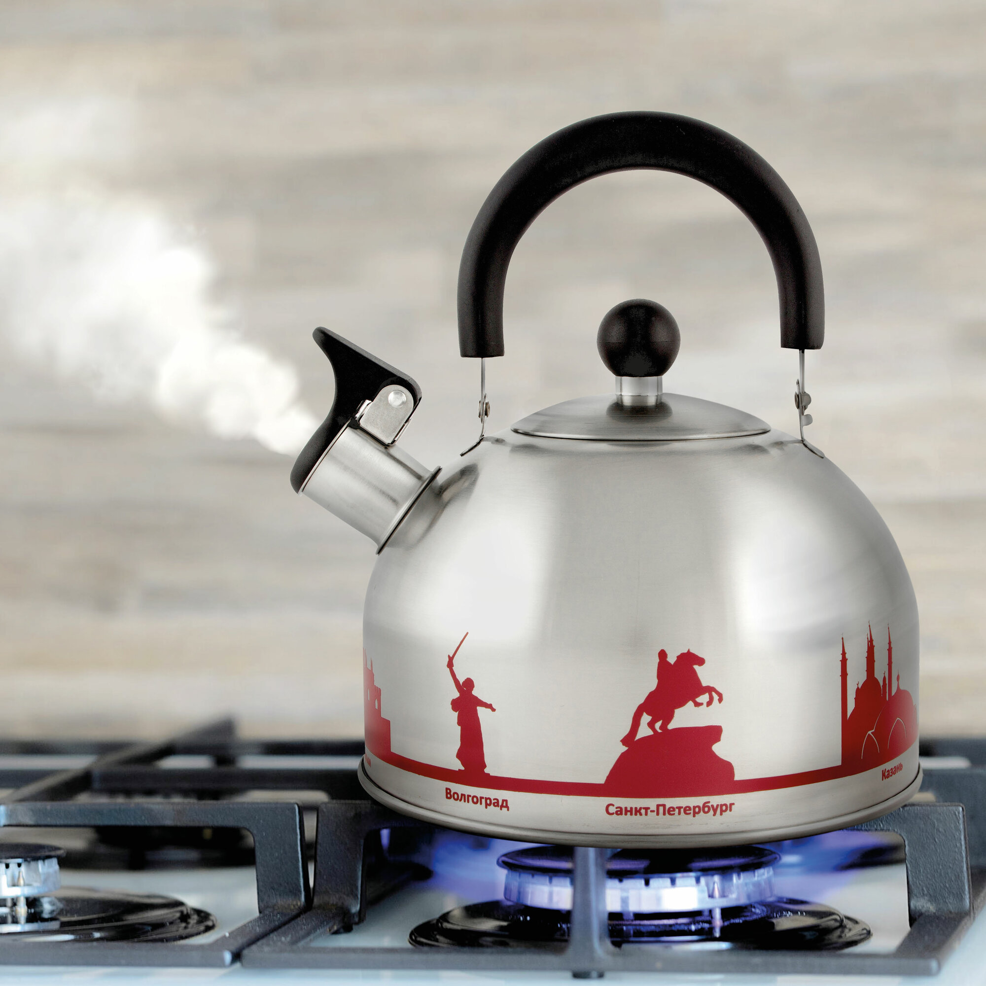 10 цен на Чайник из нерж. стали "города россии" со свистком 2,5 л, с рисунком, меняющим цвет