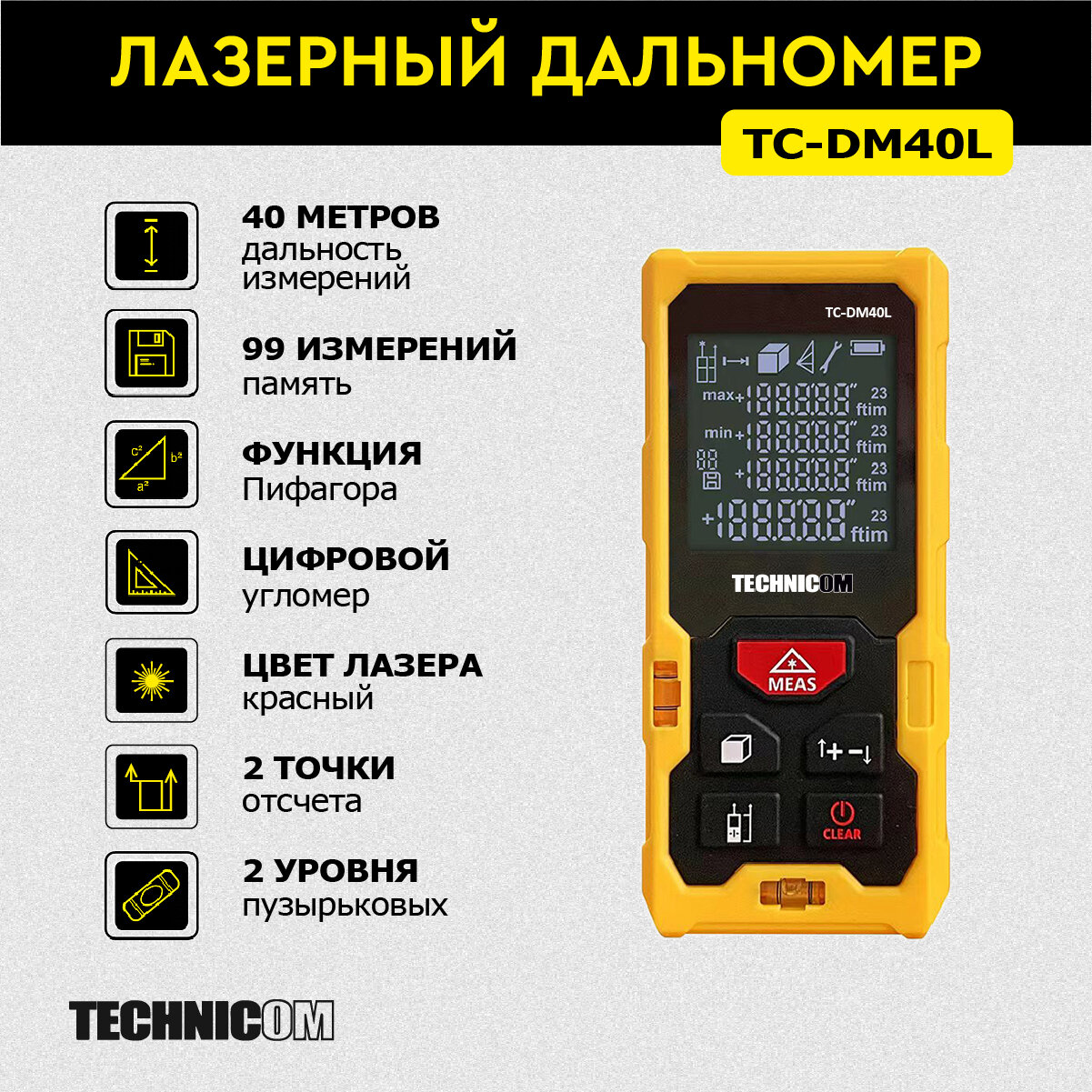 10 цен на Лазерный дальномер TECHNICOM TC-DM40L, дальность 40м, цвет лазера красный, 2 точки отсчёта