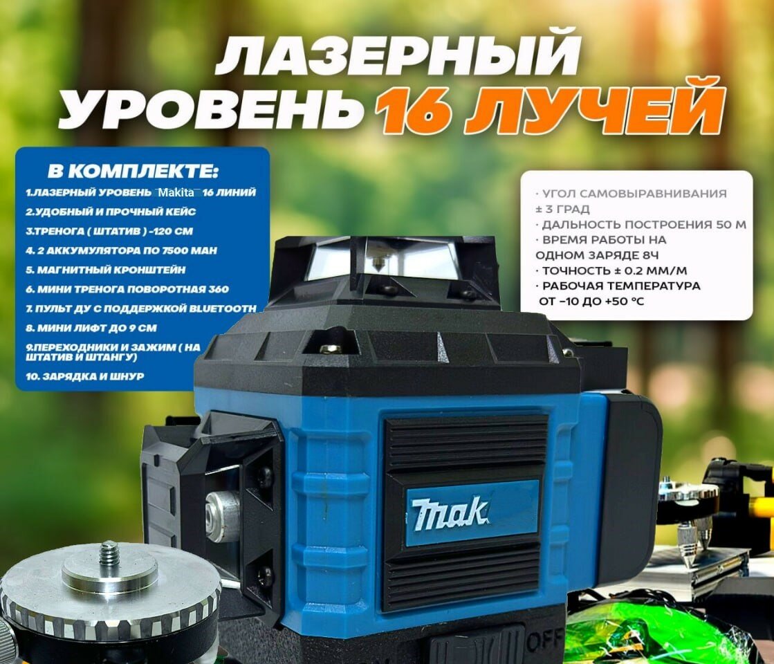 Лазерный Уровень 16-Линий 4D с Обзором 360° + Надёжный Кейс информация: