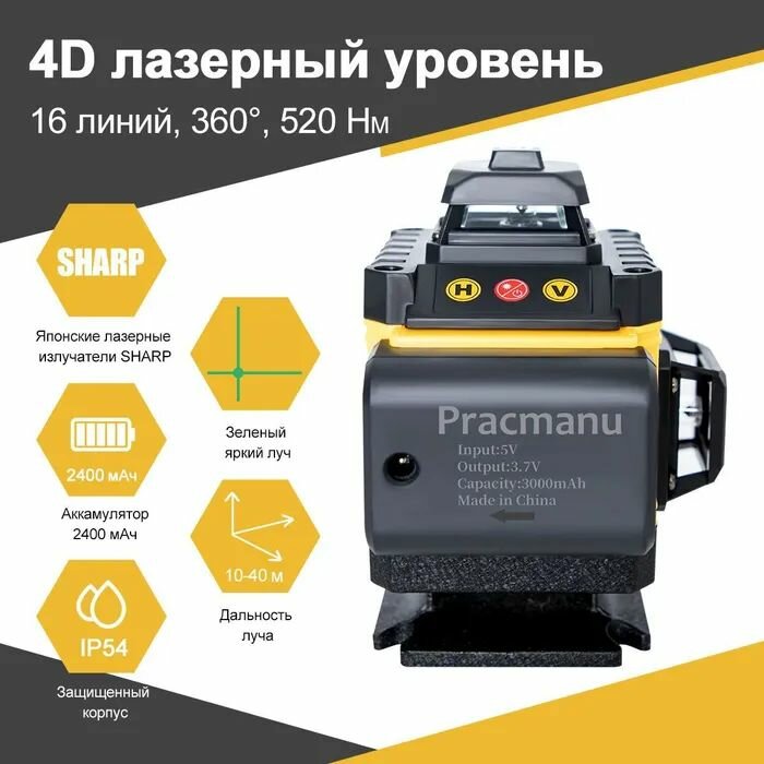 Лазерный уровень /нивелир PRACMANU TQY11, Зеленый луч информация: