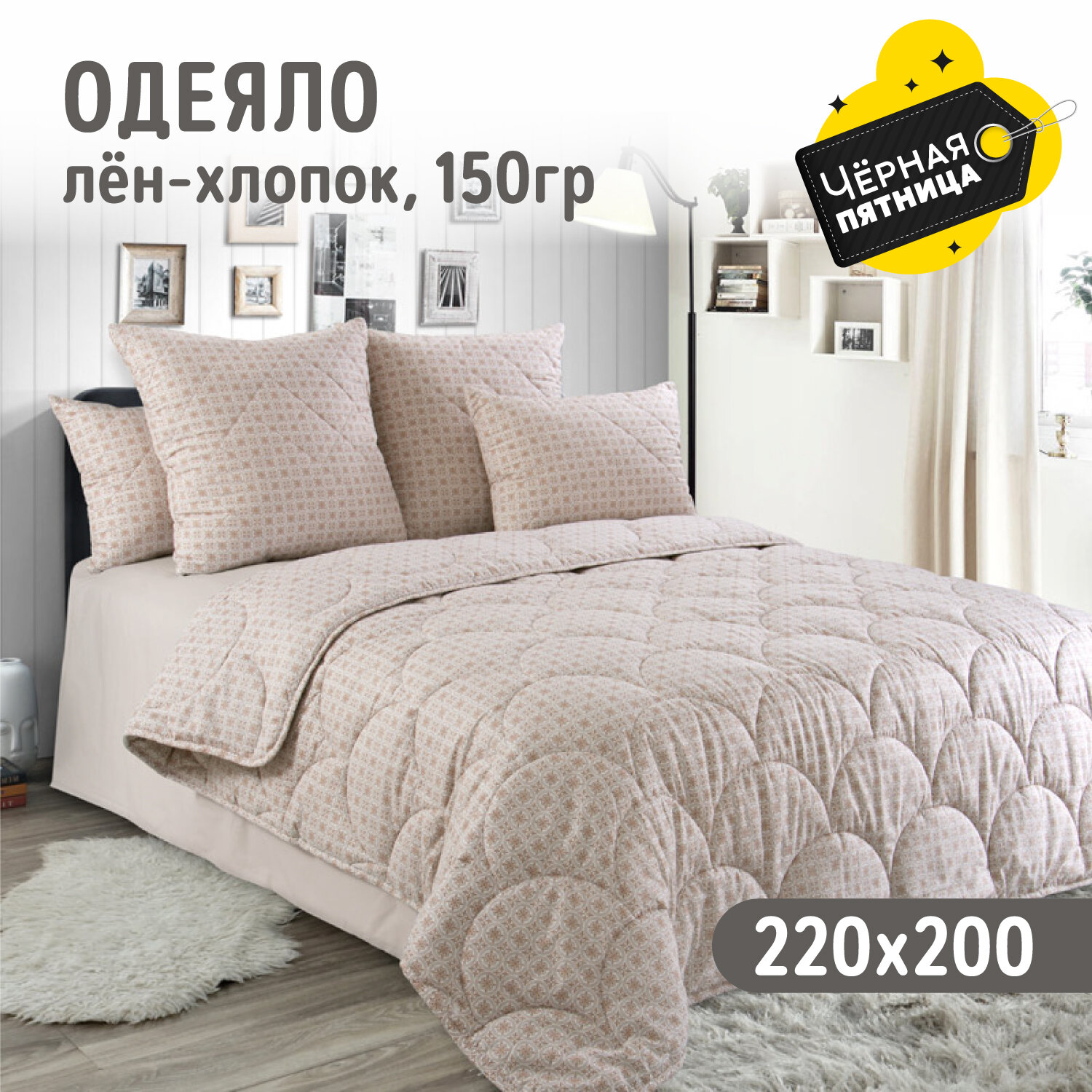 10 цен на Одеяло евростандарт 200х220, Лен-Хлопок, летнее 150 г, перкаль