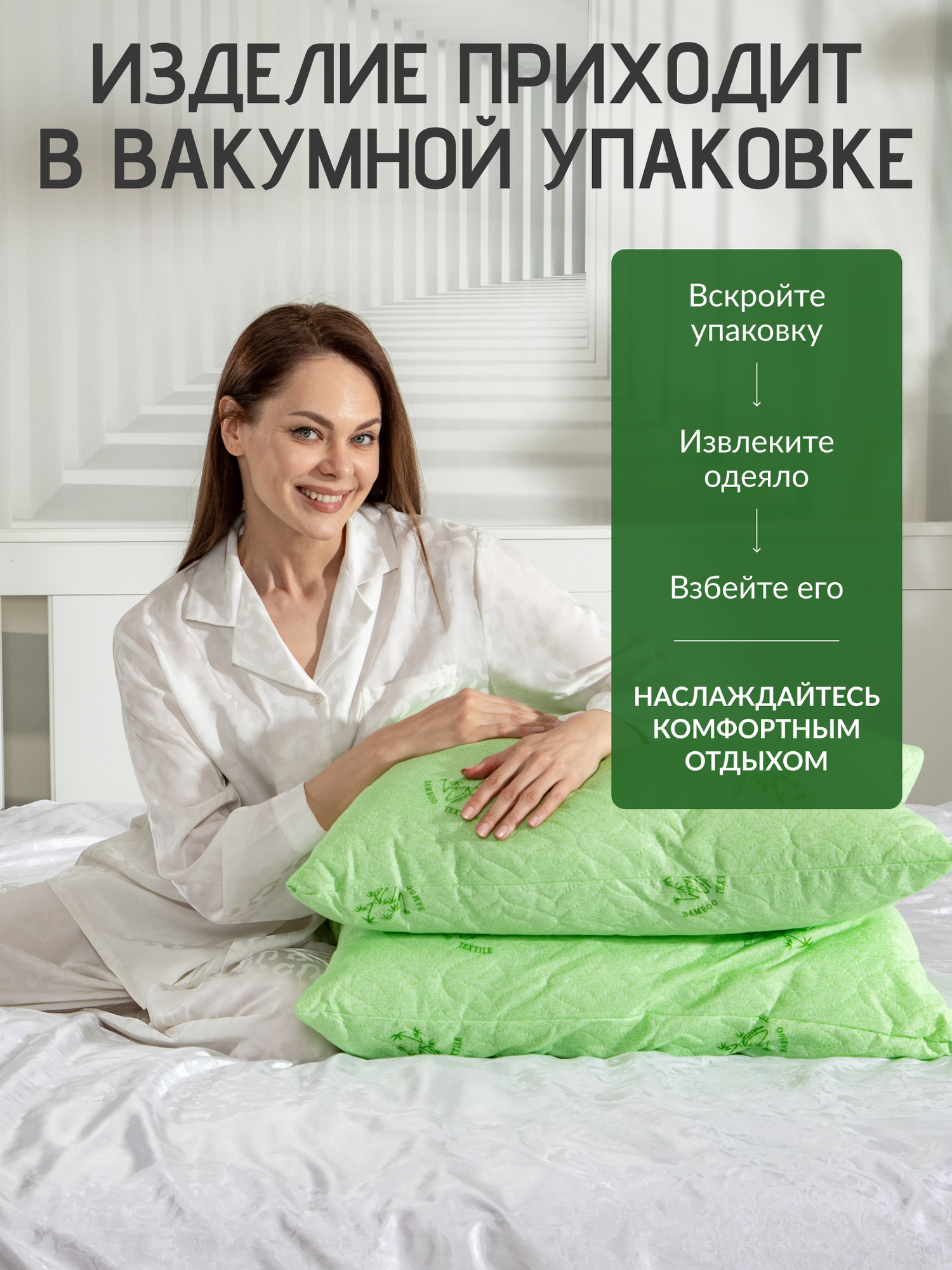 Подушка 50x70, чехол: 100 % п/э, наполнитель: полиэфирное волокно, бамбуковое волокно, цвет зеленый информация: